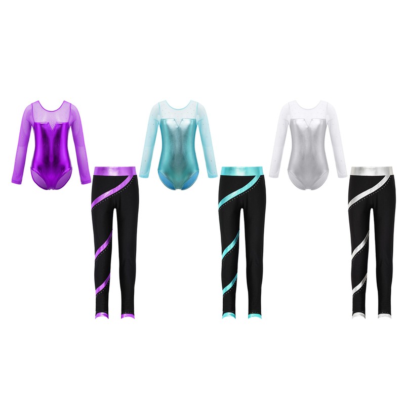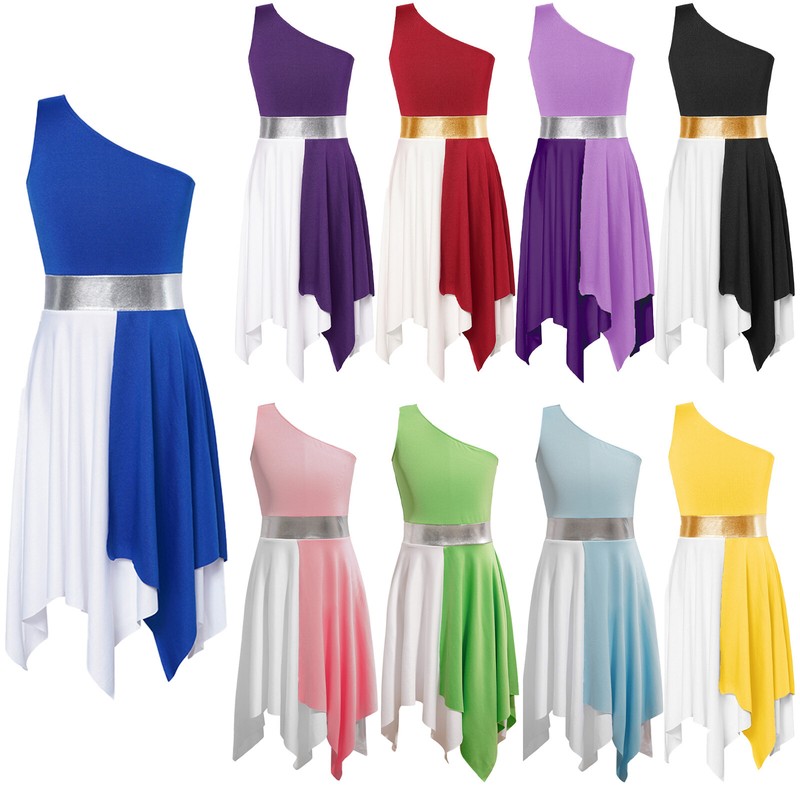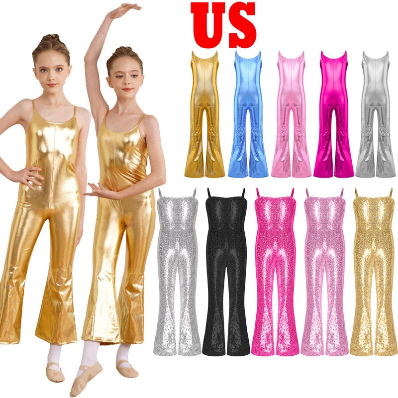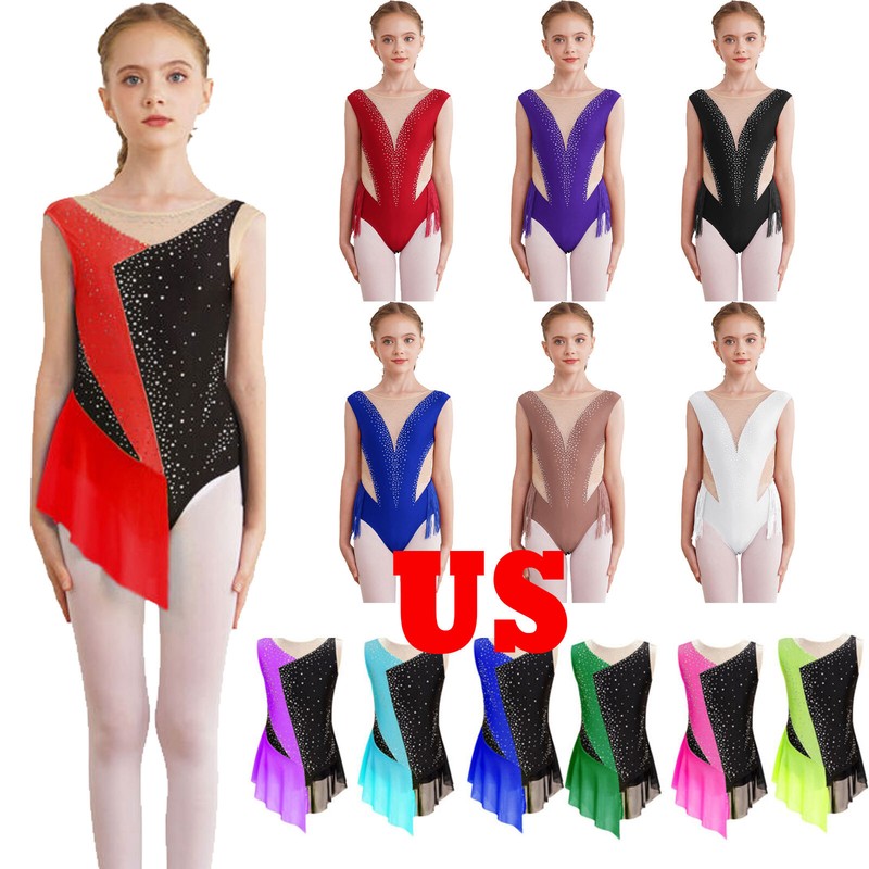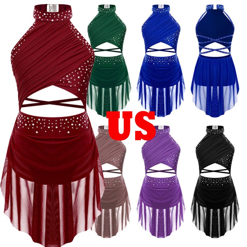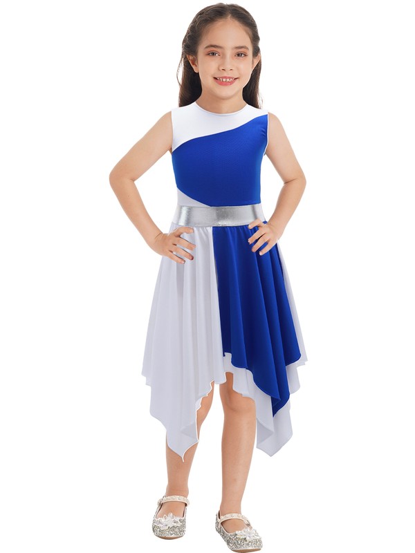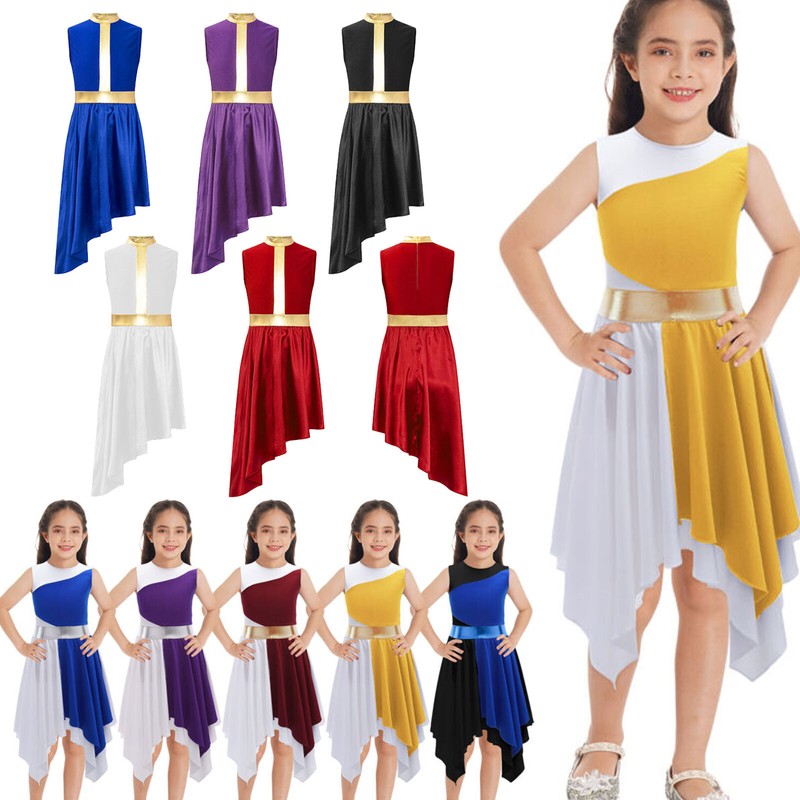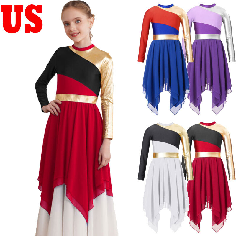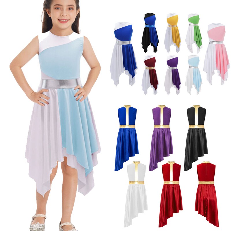 US Kids Girl Lyrical Praise Dancing Dress Metallic Patchwork Sleeveless Costume