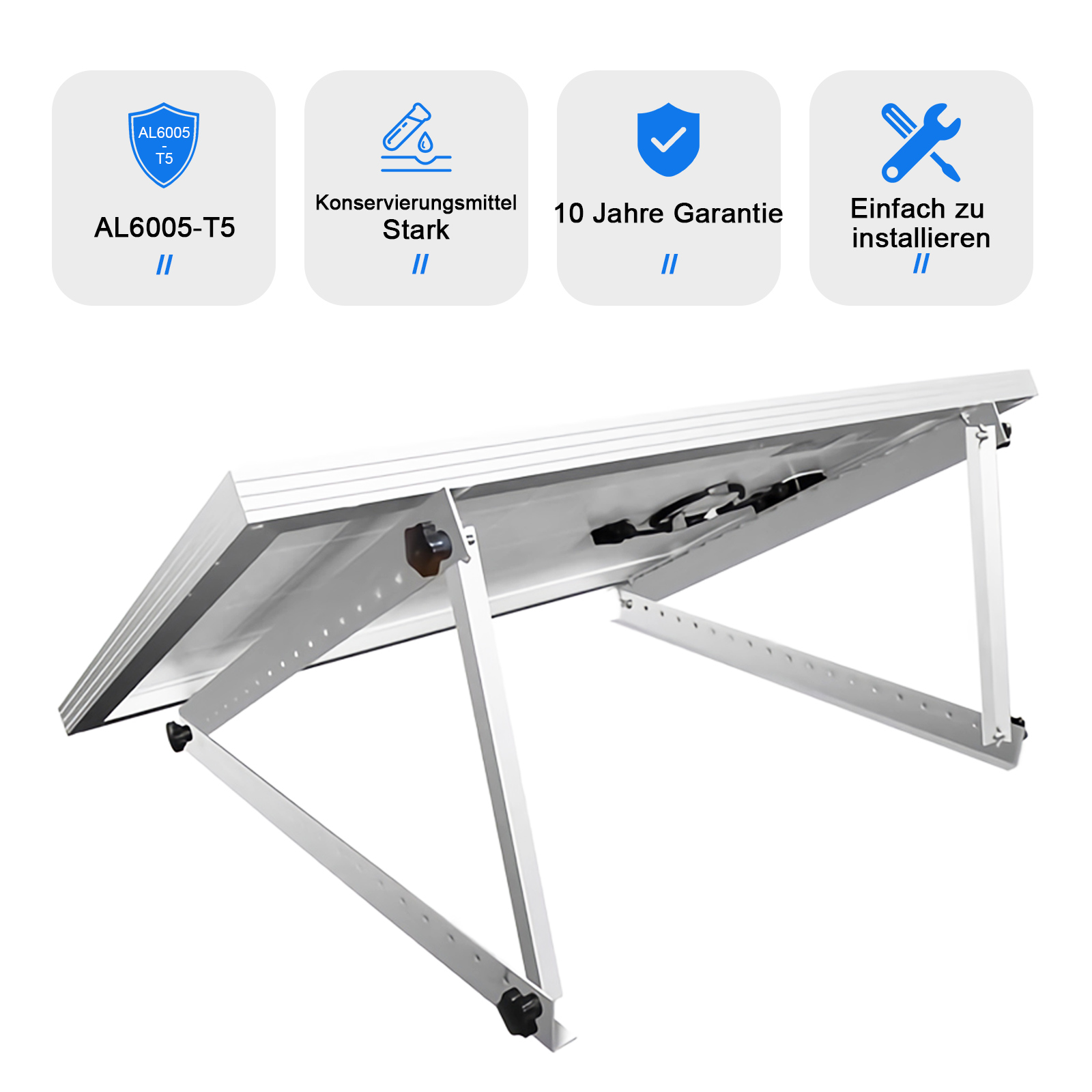 【EASY INSTALLATION】Quick assembly with stainless steel fasteners and precise hole placement. Only 4 steps are required to complete the installation of solar panels.