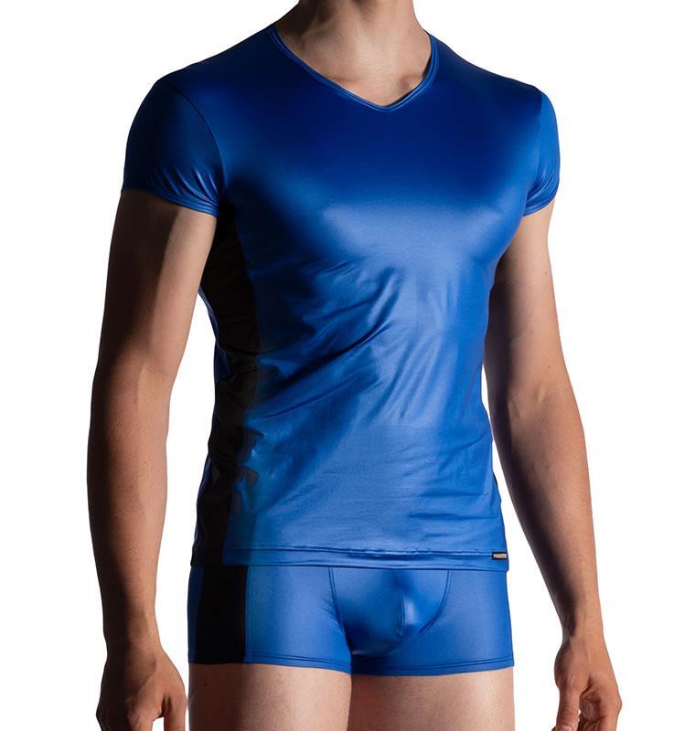 Sofort Kauf Manstore M951 Brando Shirt blau blue T shirt Top Tee Oberteil Kurzarm Stretch