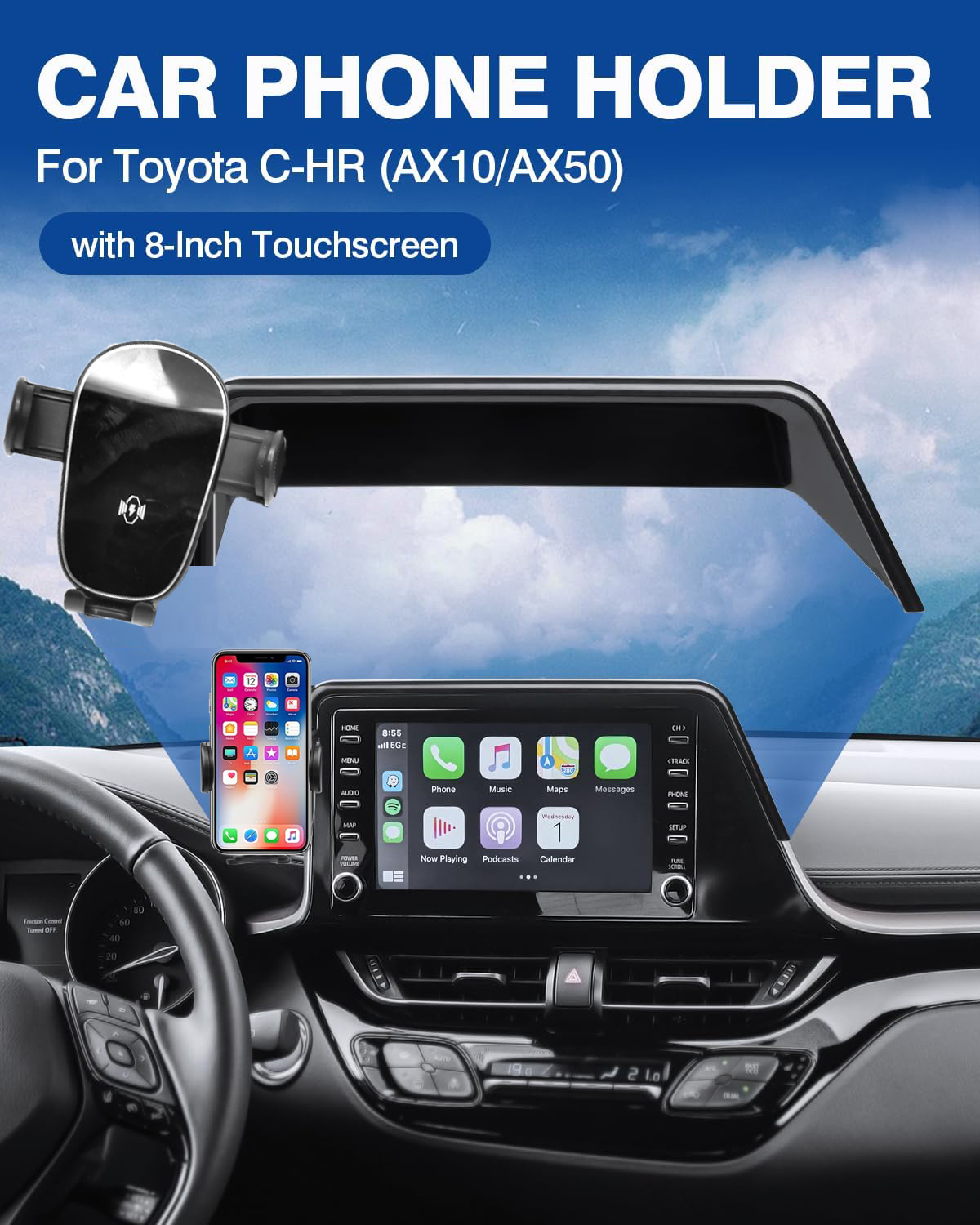 • Toyota C-HR Accessories -- This phone holder Fit for 2019 2020 2021 2022 Toyota C-HR with 8-inch screen. Adapt fit for 4.7-6.7 inch phones.