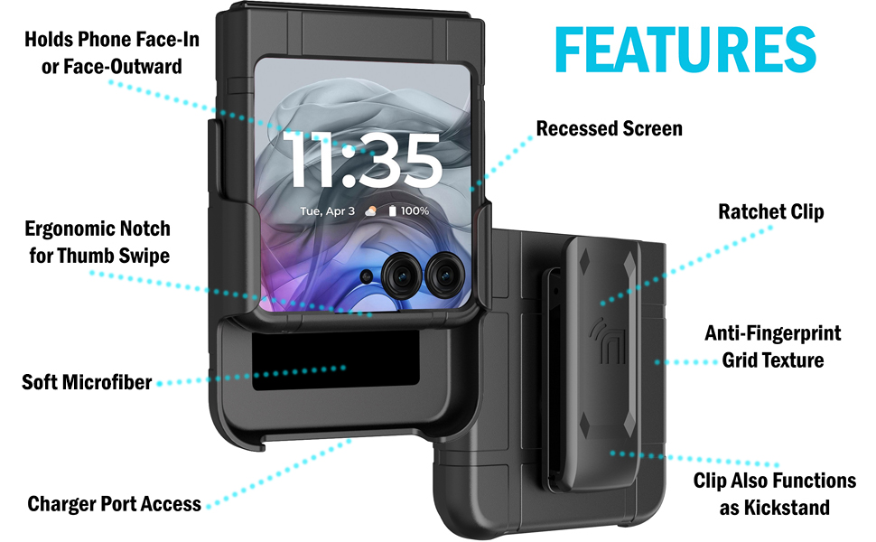 SLIM CASE: The case is composed of two hard shell covers that snap on the front/back panels. Your RAZR 2024/2025 phone remains fully functional in the case with cutouts to access all ports. You can still flip the phone open and closed as normal. Elevated lip makes your exterior screen recessed for protection. Ergonomically designed with notched bezel provides better feedback when you "swipe up" with your thumb.