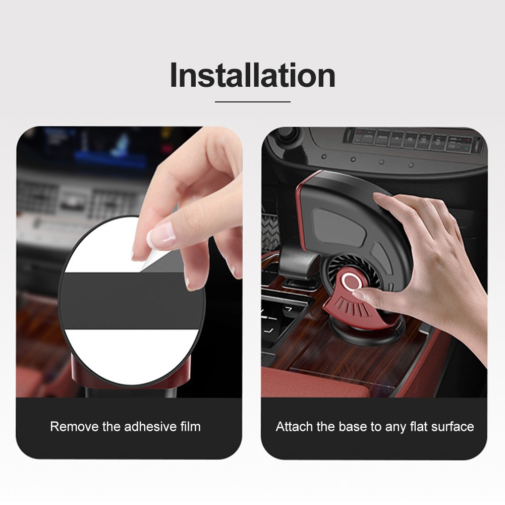 *5. Easy Installation: The base comes with adhesive backing, attach it to any flat surface, like dashboard, and plug in 12V car cigarette lighter interface to power it on.