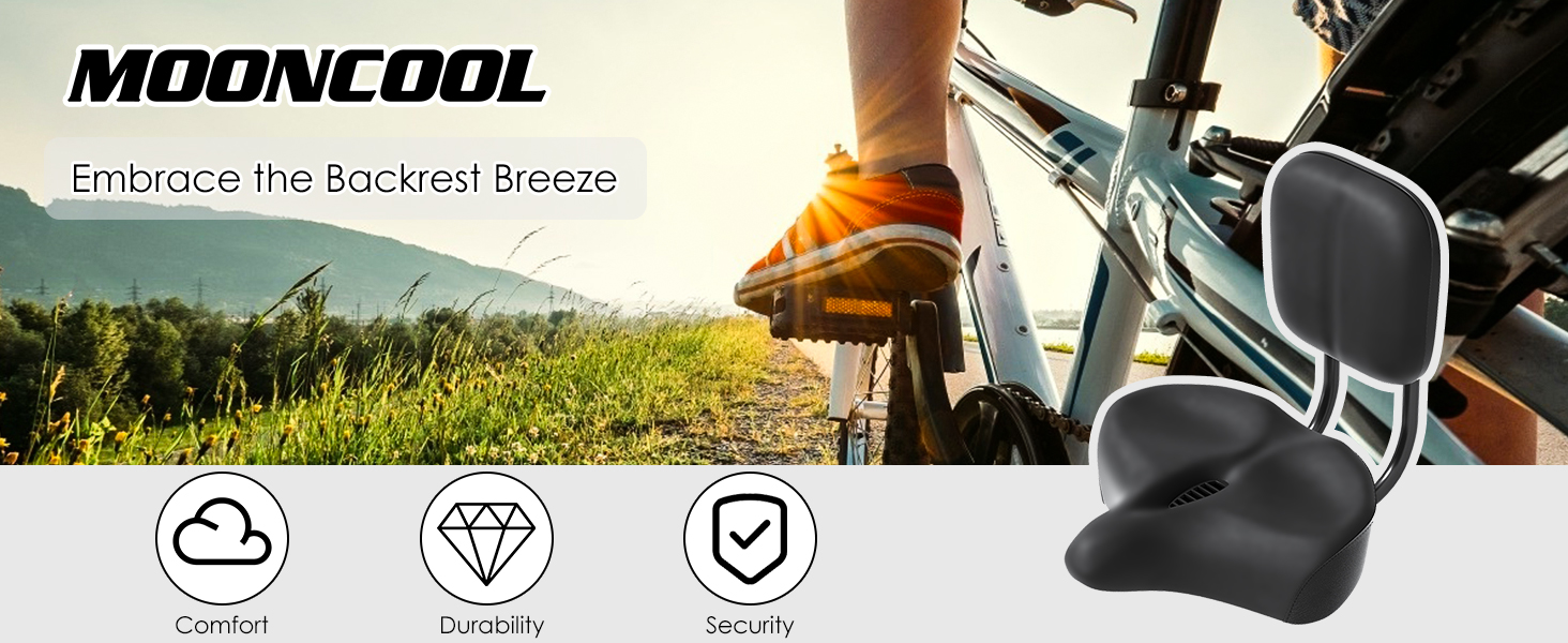 Comfortable Bike Seat: MOONCOOL Saddle Bike Seat with Backrest designed with extra padding and elastomer spring suspension; spares you from aches and pains as it divides the pressure when used as a stationary exercise, indoor outdoor cycling. A must have for bicycles and tricycles.