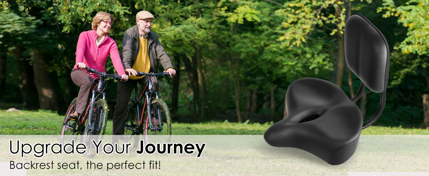 Ergonomic Design Bike Saddle: Extra wide design fits your hips softly and perfectly without compromising leg movement. Our seat increases the force area, the ass support force and riding comfort at the same time. Ride with safety and confidence for its backrest support. High elasticity & high density Memory Foam & Gel offers better shock absorption effect, provides better protection to your riding.