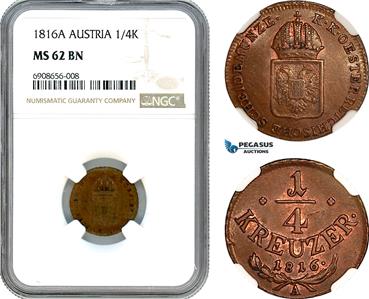 AK195, Austria, Franz II, 1/4 Kreuzer 1816 A, Vienna Mint, NGC MS62BN
