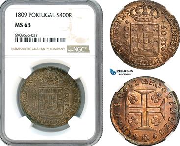 AK218, Portugal, Joao, 400 Reis 1809, Lisbon Mint, Silver, NGC MS63