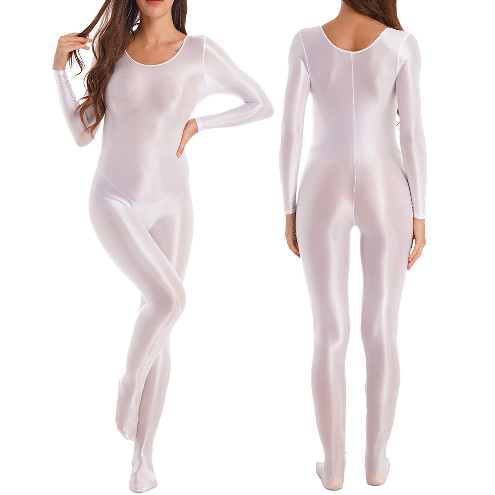 Women's Semi-Sheer Oil Shiny Glossy Jumpsuit Full Bodystocking Bodysuit Catsuit