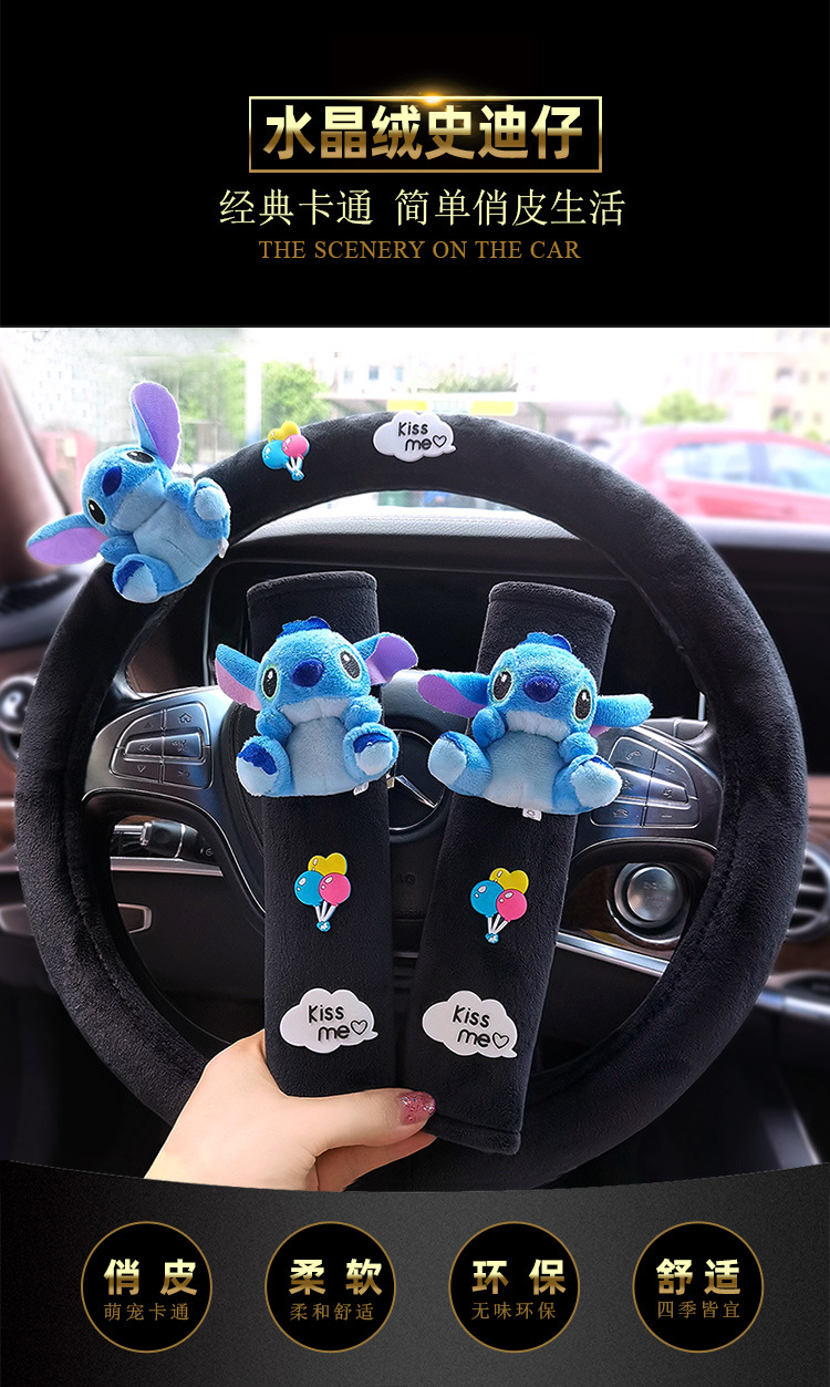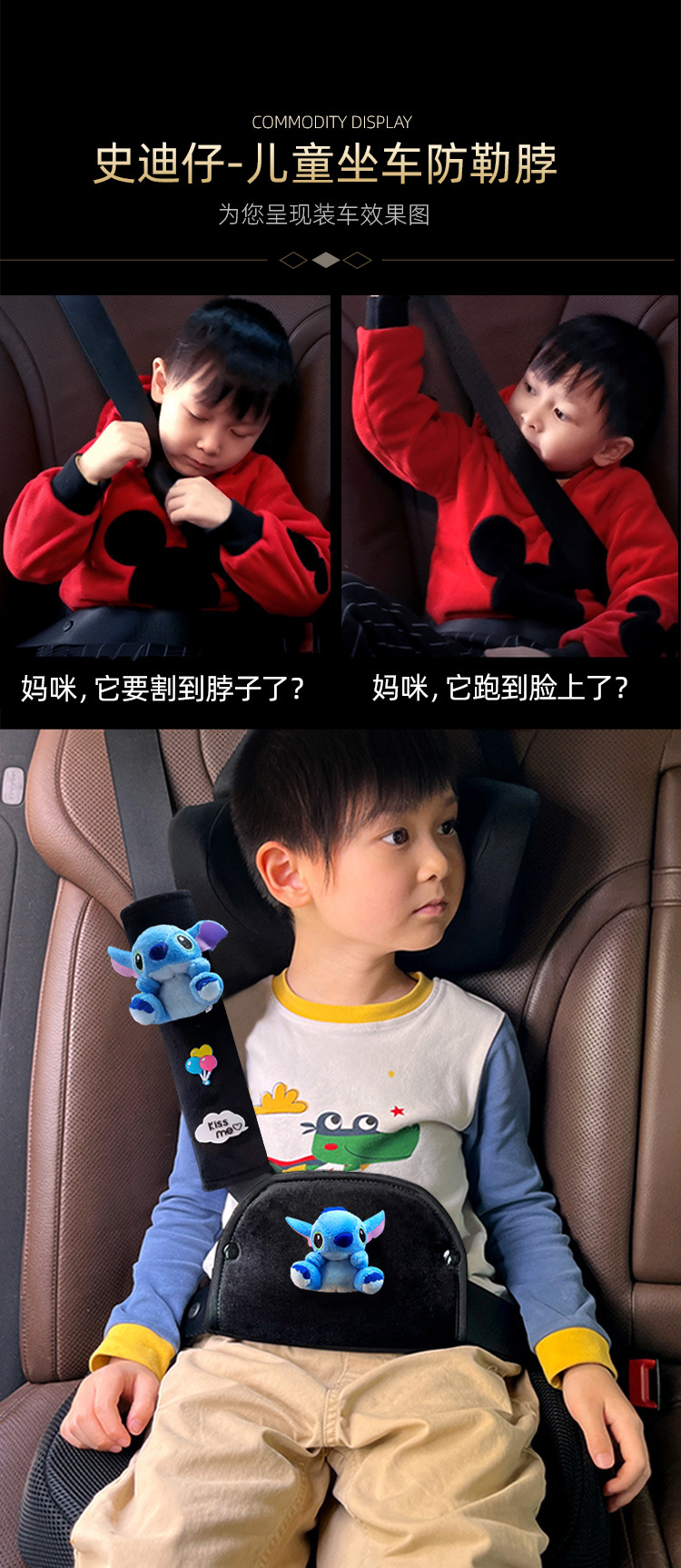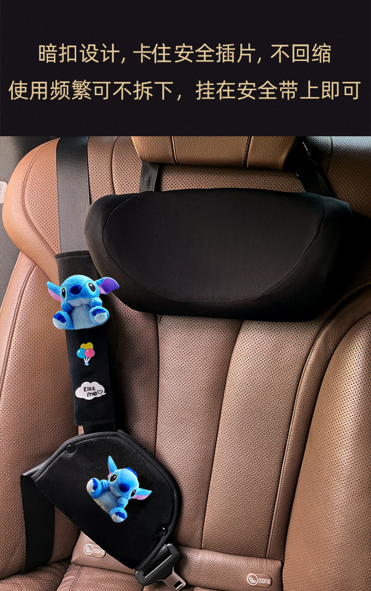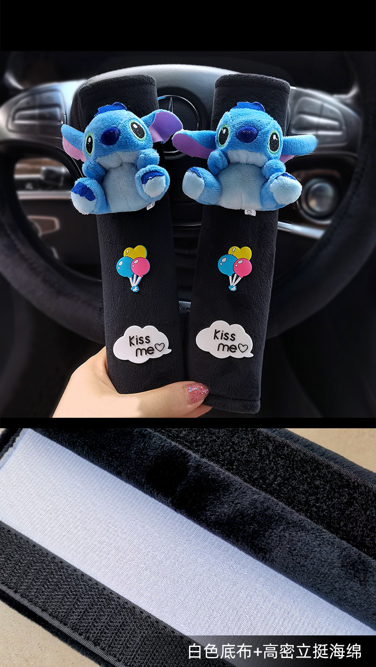 Add some fun to your car with this cute cartoon Stitch car seat belt shoulder protector interior decoration. This action figure is perfect for fans of the popular movie and can be a great addition to any collection. The shoulder protector is designed to keep your seat belt in place and prevent spills, making it a practical and stylish accessory for any car.