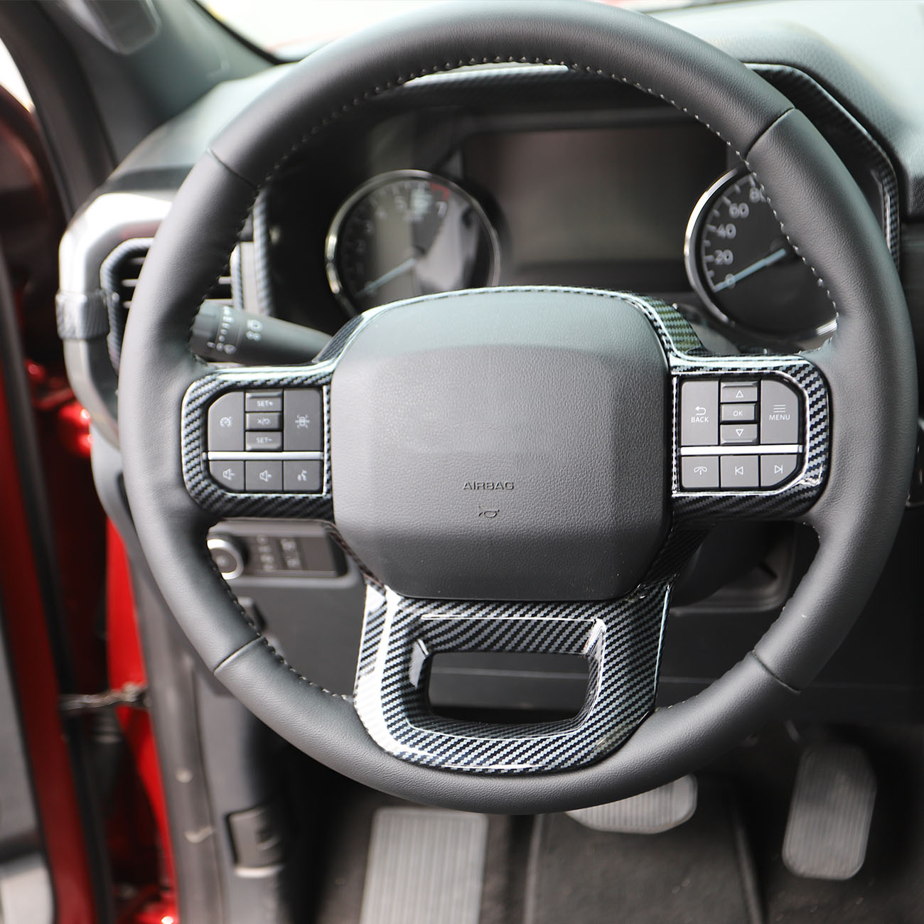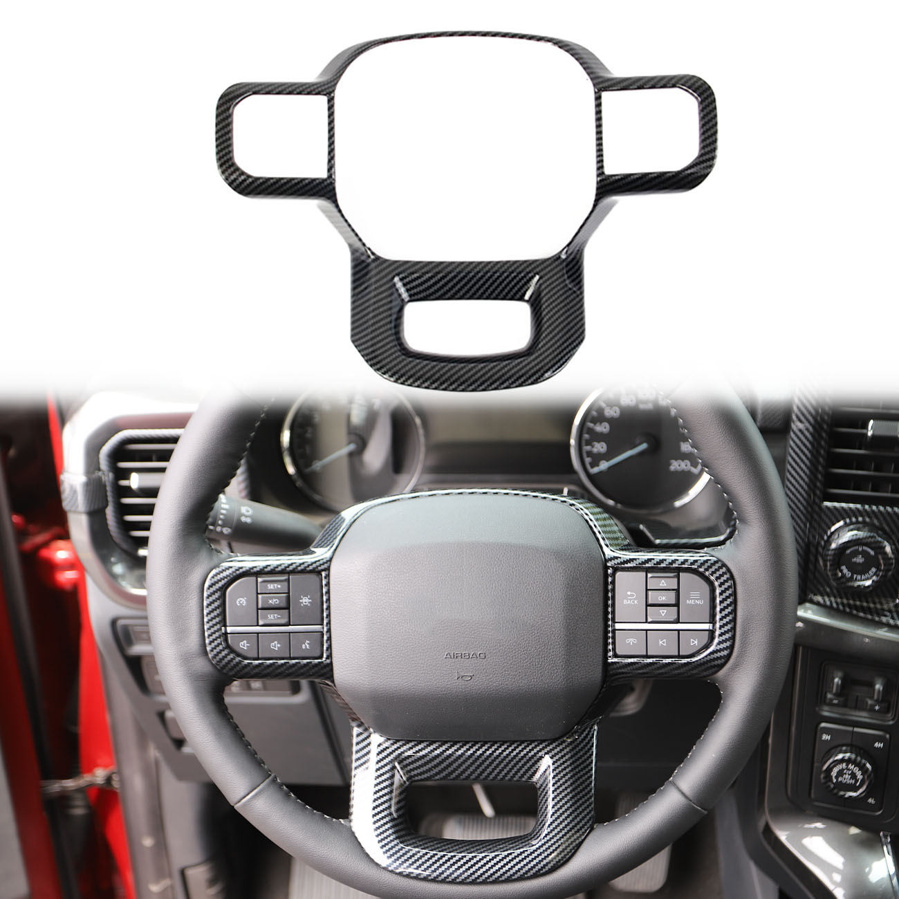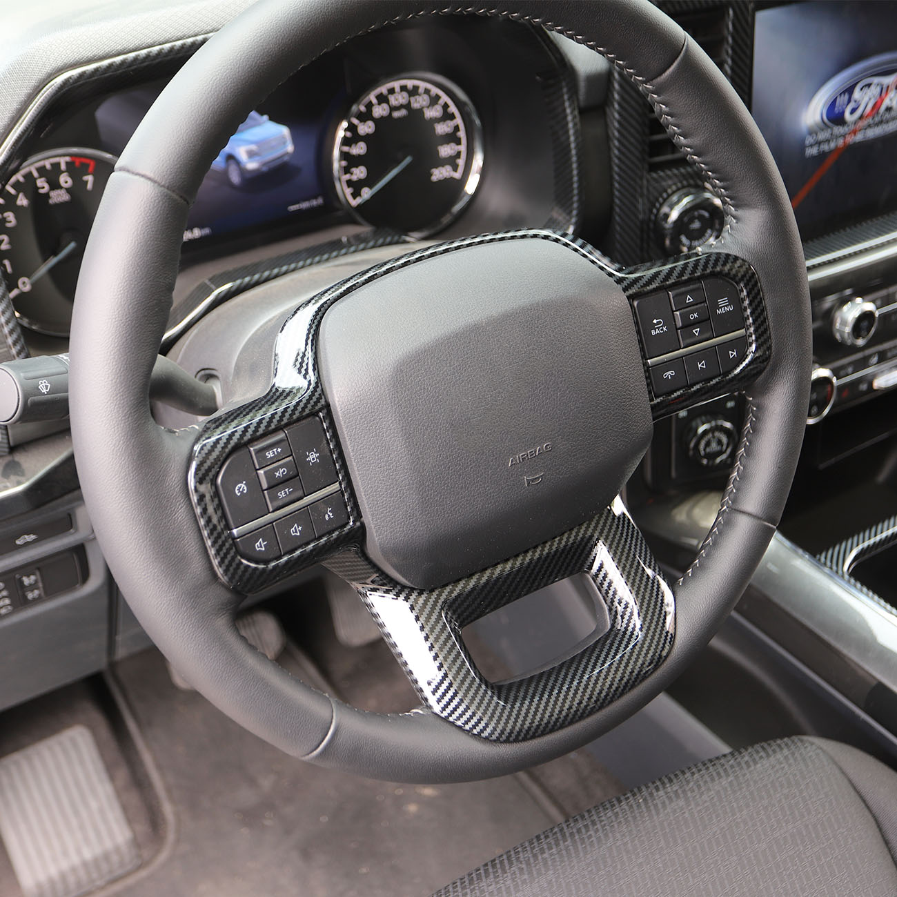 Carbon Fiber style outlook Steering Wheel Interior Cover Trim for Ford F150 F-150 2021-2025 decoration accessories