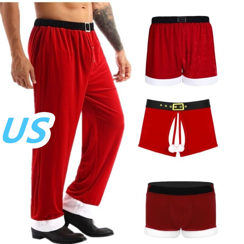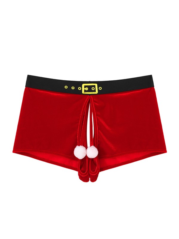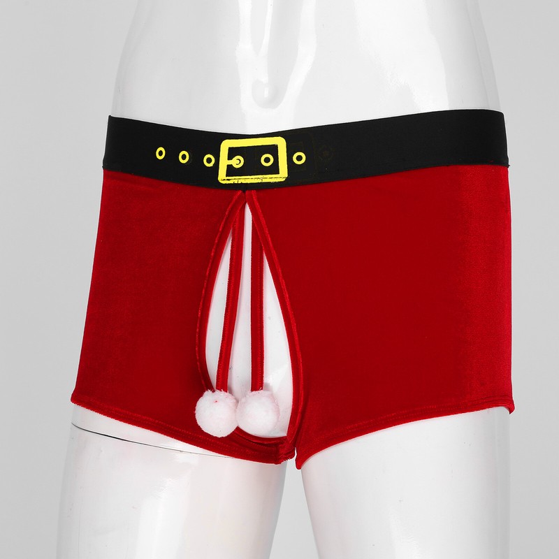 Men Christmas Crotchless Velvet Boxer Shorts Ball Decor Lingerie Underwear Elastic Waistband Underpants.