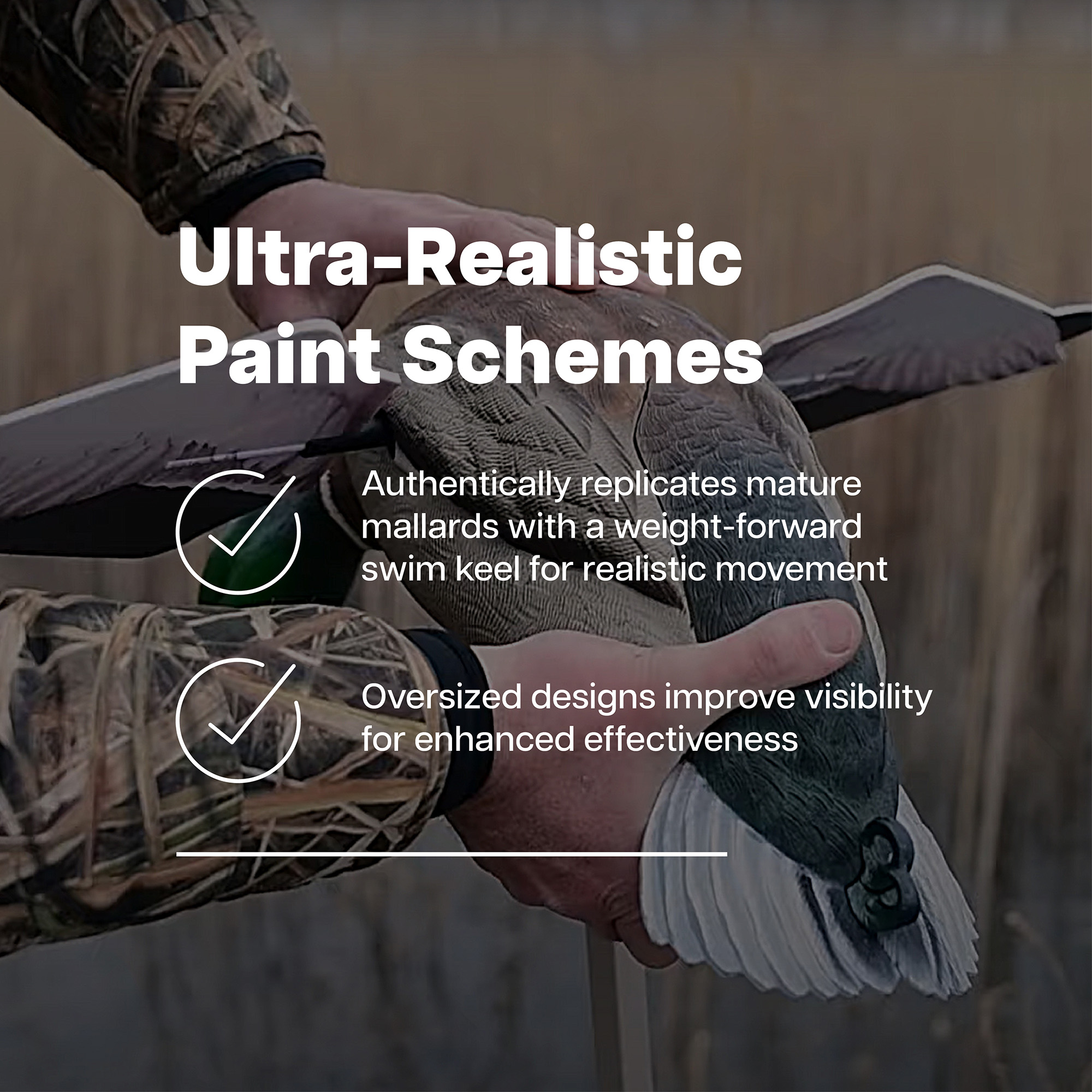 • Superior natural flash to attract more ducks; 4 pre-set modes (low-light, mid-day, approach, landing) with an option for custom settings