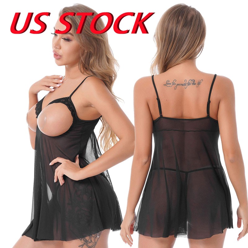US Womens Bodycon Night Dress Ultra Thin Lingerie High Slit Cheongsam Clubwear