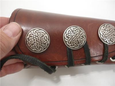 - I know nothing about this guard, it was an estate find. I assume it is for the right arm, I tried it on and it fits my right wrist great and I have Men's L wrists. The strap is adjustable so I think it would fit most wrist sizes. It measures (laying flat) 10" across the top and 7.5" across the bottom. I do not think the buttons are sterling but are silver.