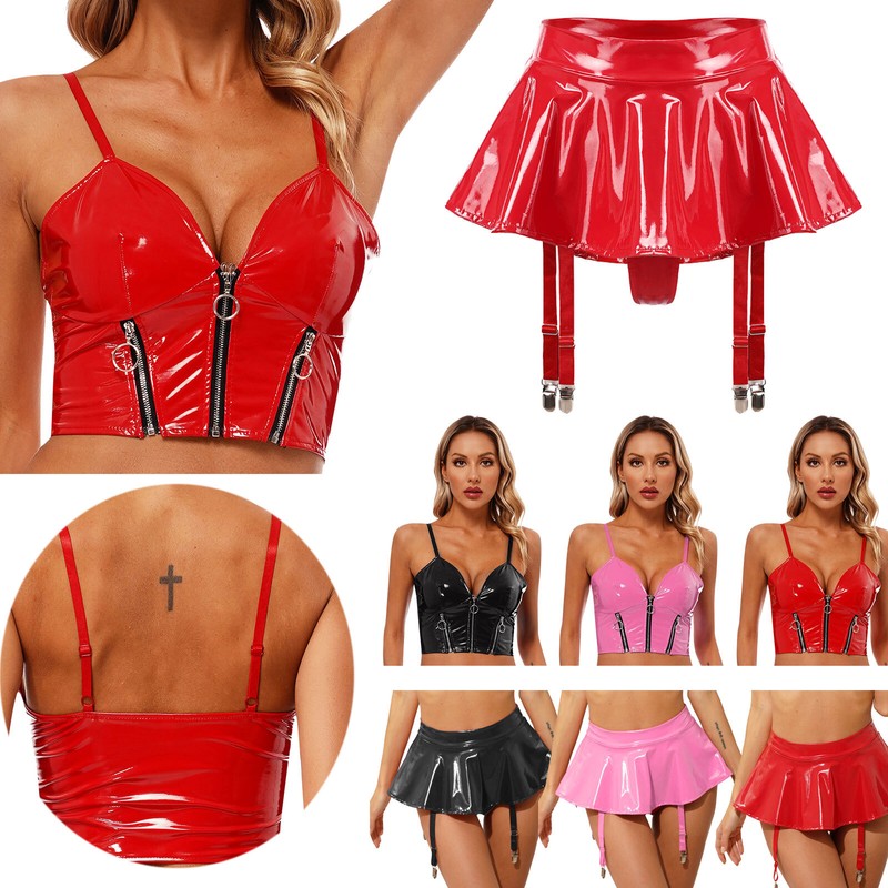 US Women's Shiny Metallic Crop Tops Rave Dance Wet Look Party Clubwear Camisole