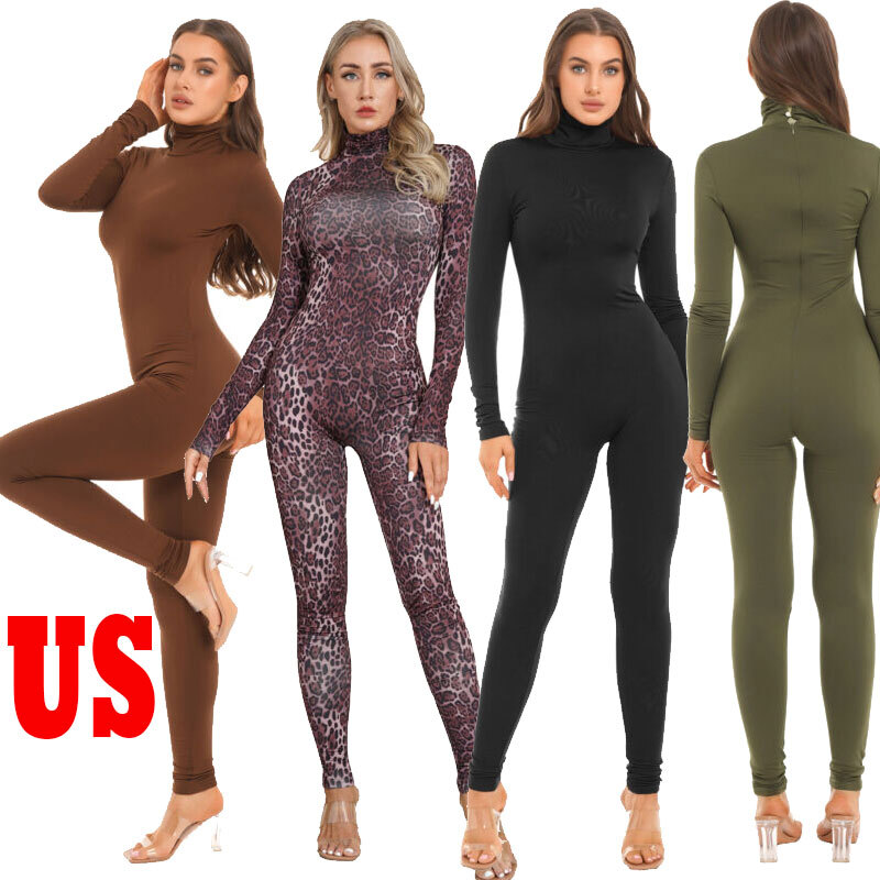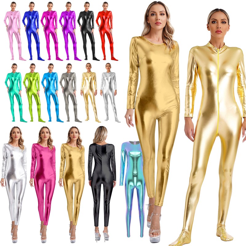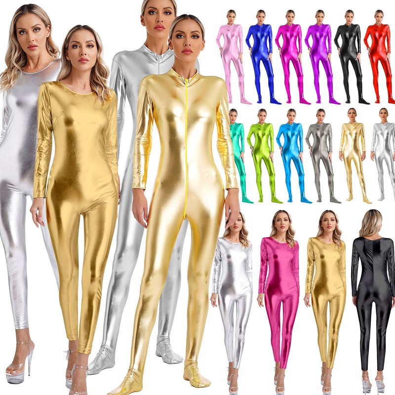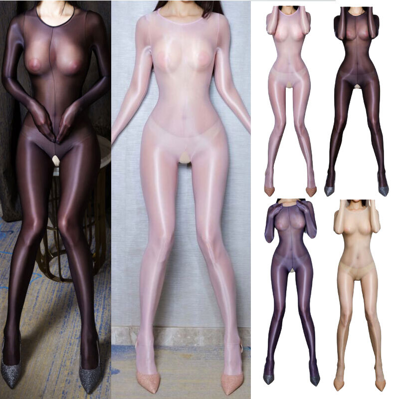 US Womens High Stretch Oil Glossy Bodystocking One Piece Full Body Bodysuit Sexy