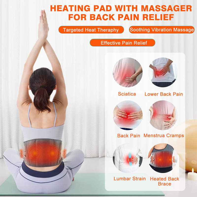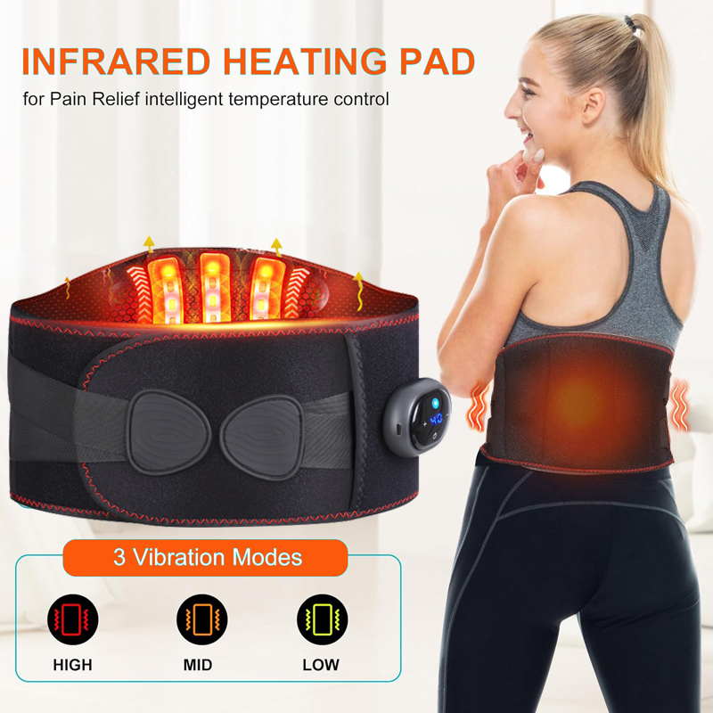 Temperature setting: 40℃-45℃-50℃-55℃-60℃. The back massager for back pain relief has 2 powerful massage motors and 3 adjustable vibration intensities for your free choice. Heating technology can provide targeted heat , combined with the vibration massage can give you the most effective relief for sore/painful areas.