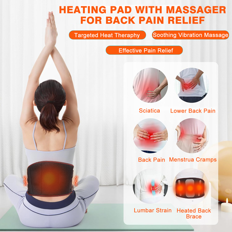 5 Heating Levels and 3 Vibration Massage: The back massager with heat has 5 heating levels and 3 intensity levels. Heating and massage function can work at the same time or alone.