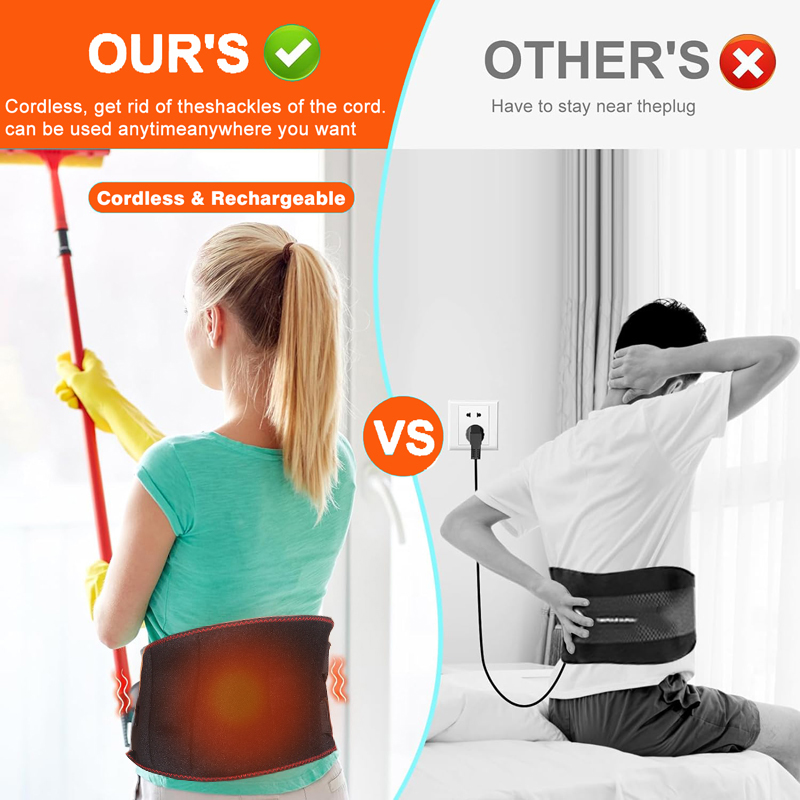 Cordless Heating Pad Back Massager with Rechargeable Battery: Cordless back massager comes with a 2000mAh lithium-ion battery. Back massager with heat with a USB charger that can heat the belt directly or charge the battery. It can be USB powered, so you can use it anywhere as long as you are surrounded by devices with USB powered ports.