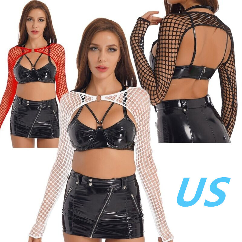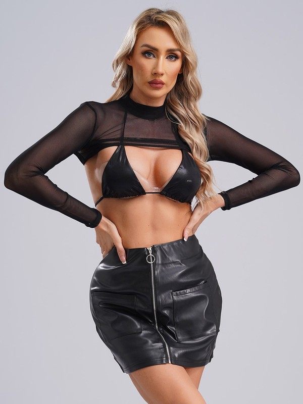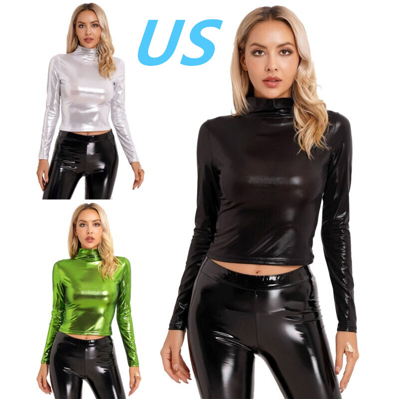 Womens See-through Mesh Crop Top Mock Neck Long Sleeve T-shirt Cover Ups.