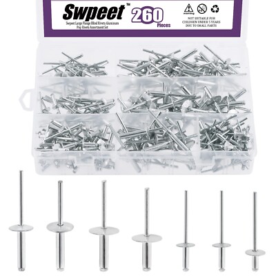 🥇Swpeet 260Pcs 7 Sizes 3/16" 1/8" 5/32" - M3.2/4/4.8 Large Flange Aluminum
