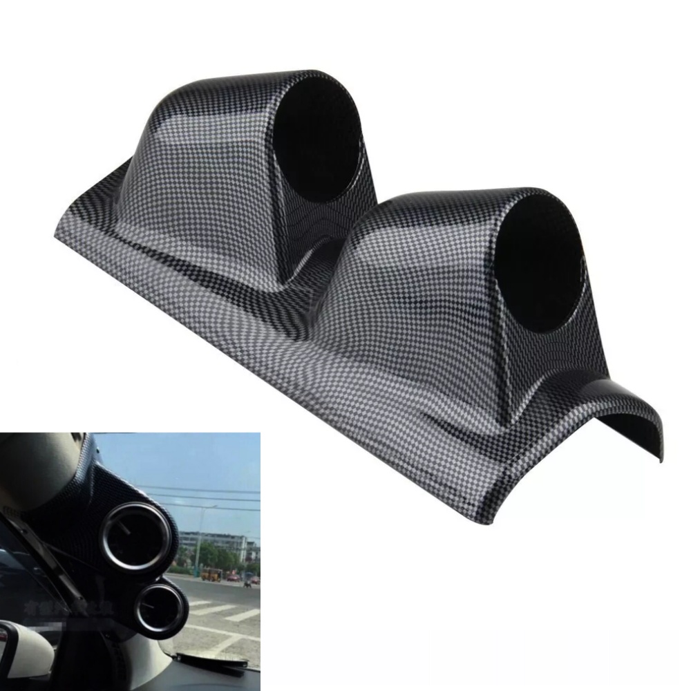 52mm 2inch Dual holes Gauge A-Pillar Meter Dash Pod Mount Holder Carbon Fiber