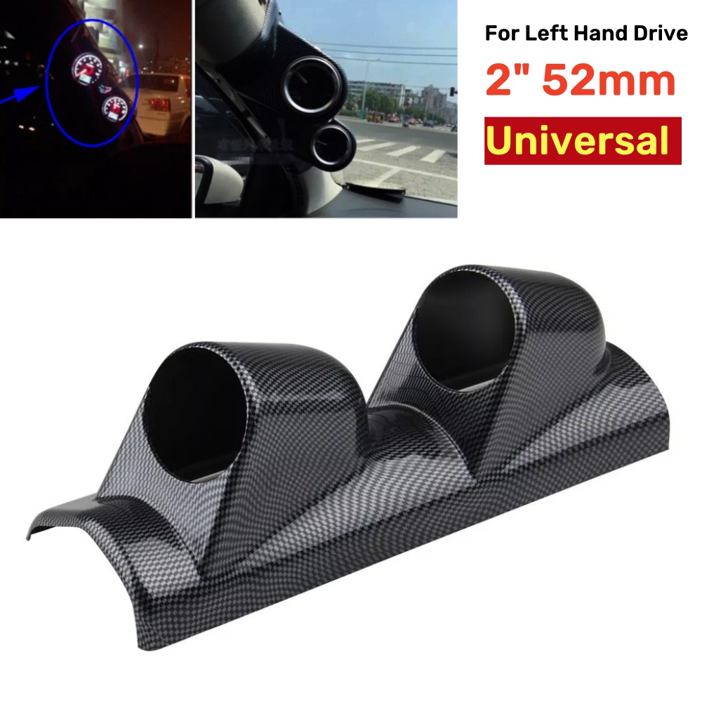 Universal 2" 52mm Left Driver Carbon Fiber A Pillar Dual 2 Hole Gauge Holder Pod