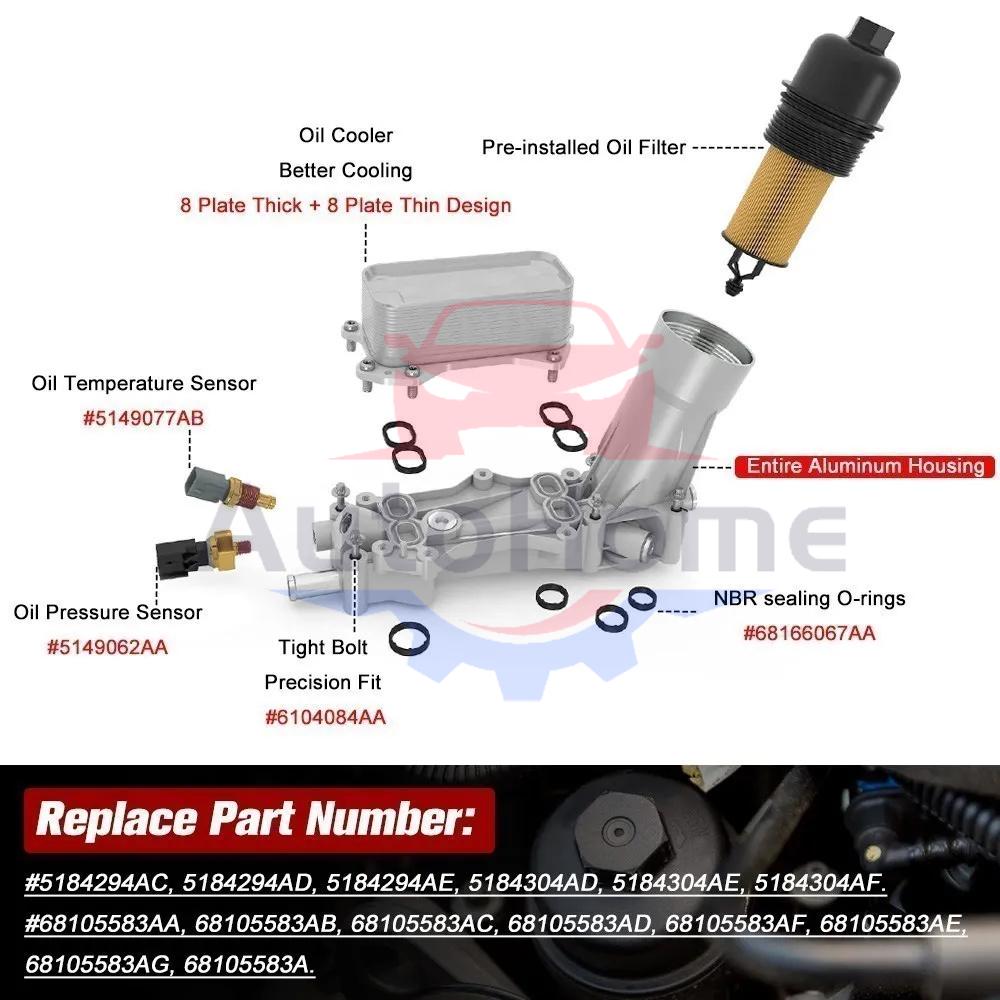 Engine Oil Cooler Filter Housing Assembly For Dodge Chrysler Jeep 2011-2016 3.6L