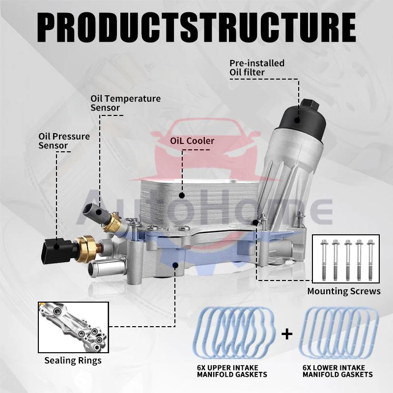 1 x Oil Filter Housing, 1 x Oil Filter, 1 x Oil Cooler, 1 x Oil Filter Housing Cap