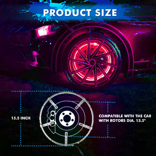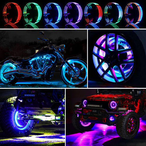 🌟-【Double Control Methods】 - This RGB wheel light system offers the convenience of controlling it through both a smartphone app and a remote control. This dual control method makes operation effortless and allows you to effortlessly bring a unique and captivating look to your car or truck with powerful and innovative lighting effects.