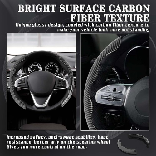 ✅-[High Quality]: Select carbon fiber leather for steering wheel cover,Upgrade your vehicle instantly with this stunning looking, Carbon fiber steering wheel wrap with sports detailing and put some style in your ride!