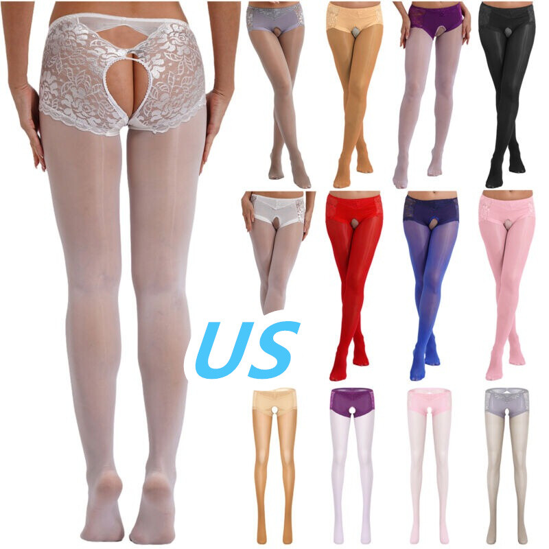 Womens Hollow Out Stockings Leggings Mid Waist Cutout Crotchless Pantyhose.