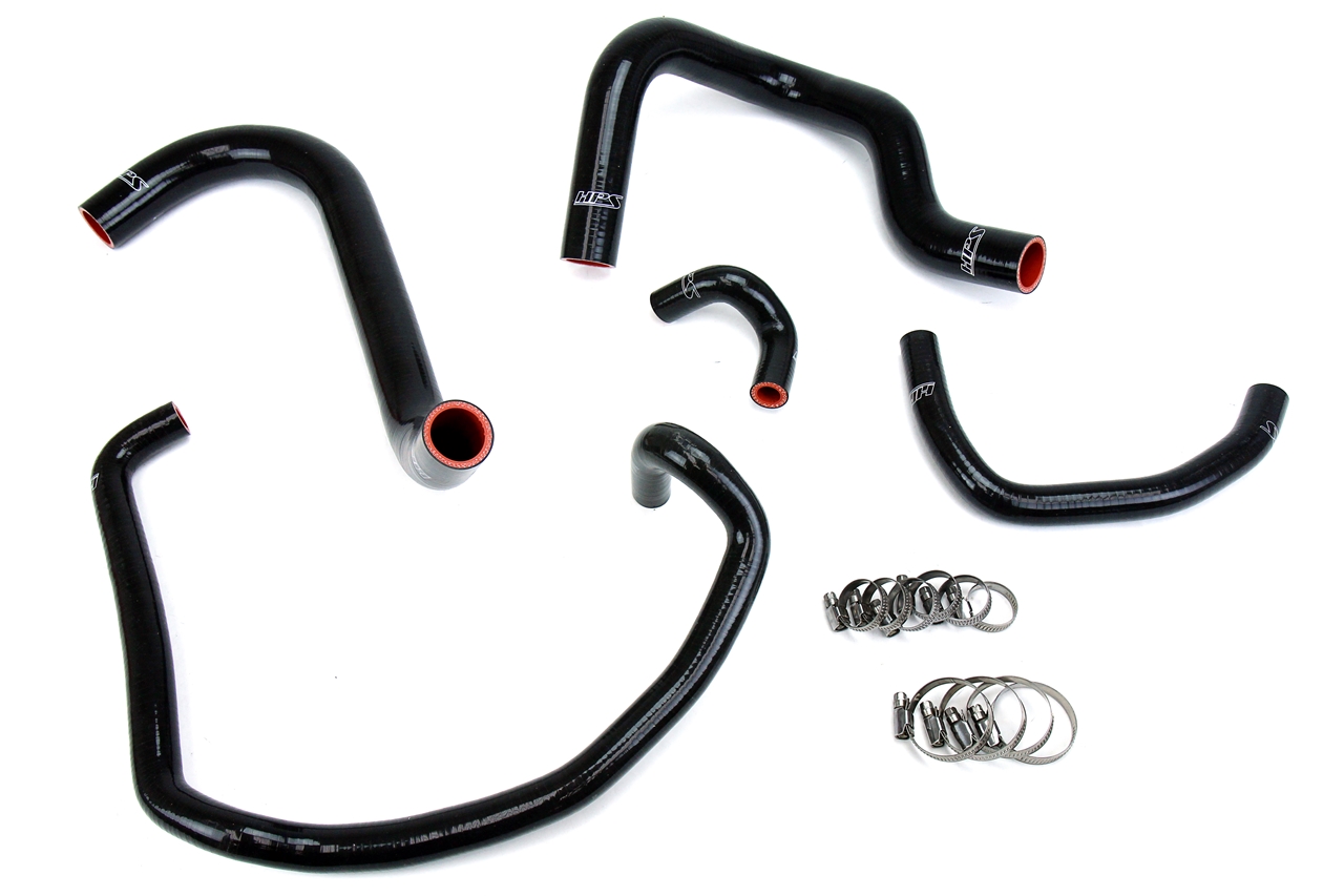 High Temp 3-ply Reinforced Silicone,Replace Rubber Radiator Heater Coolant Hoses HPS black high temp 3-ply reinforced silicone coolant hose kit 5pcs complete set (part number 57-1746-BLK) replaces Toyota 95-04 Tacoma 2.4L 4 Cylinder stock OEM rubber upper and lower radiator hoses and heater hoses with premium grade high-heat resistance material which meets or exceeds OE specifications (Maximum temperature rating: 350F). Compared to the local auto parts store universal hoses, HPS silicone radiator and heater hose kit has all the correct bends and curves for a perfect fitment. HPS silicone coolant hose kit includes 100% stainless steel non-perforated embossed hose clamps for easy installation, which do not cut through the silicone hoses. HPS silicone hoses can prevent and fix the coolant leaking and engine over heating problem caused by cracked, damaged or collapsed OEM rubber coolant hoses. Excellent for extreme ambient and radiant temperature conditions, HPS silicone hoses can withstand the harsh high temperature and high pressure operating conditions of the engine yet still maintaining peak efficiency during daily driving or racing competition. HPS silicone hose kit is backed by HPS Performance Products limited lifetime warranty. Made with correct bends and curves for perfect fitment. Prevent and fix the coolant leaking and engine over heating problem caused by cracked, damaged or collapsed OEM rubber coolant radiator and heater hoses. Race proven design with long lasting quality and engineered for extremely high temperature service (Max. 350F) and prolonged exposure to under-hood and coolant heat. Includes 100 percent stainless steel industrial grade embossed hose clamps which would not cut through the silicone hoses. 100% Satisfaction Guarantee. HPS Performance will help you to troubleshoot all the technical issues and questions.