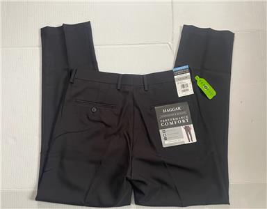 These are the Haggar Performance Comfort Straight Fit Premium Flex Waistband Black 32X30, a versatile and stylish pair of BLACK dress pants suitable for various occasions. These pants feature a hook and eye closure, flat front, and a straight leg style that provides a classic and timeless look. The pants are made of premium polyester fabric that is durable and easy to care for, making them a practical choice for everyday wear.