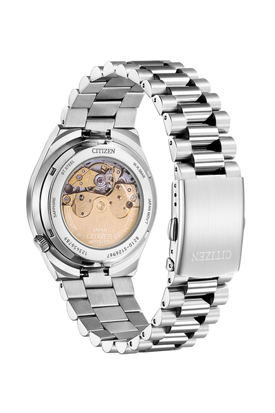 CITIZEN NJ0151-53E TSUYOSA AUTOMATIC RAINBOW BLACK DIAL MENS WATCH A Very nice watch! Basic Information Case size (W× H) 40 × 11.7 mm Case material Stainless steel Band Stainless Steel Bracelet, Fold Over Clasp Water resistance 50-meter water resistance Movement Automatic, 21 JewelsCaliber 8210 Accuracy ±20 sec / day Exterior Crystal Sapphire Glass Watch Features Functions Hour, minute, second displayDate display