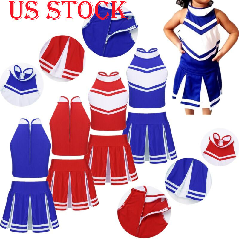 Kid Girls Cheer Leader Costume Cheerleading Outfit Shiny Crop Top with Skirt Set