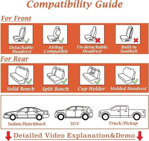 π-γAdjustability Design Fit For Most Carγ The straps used to secure the cushion cover on the entire seat are resilient and need to be clamped during installation, so the seat cover is suitable for almost all Sedan, Hatchbacks SUV Pick-up Truck or Crossovers ,Crew Cab, Van and EVs