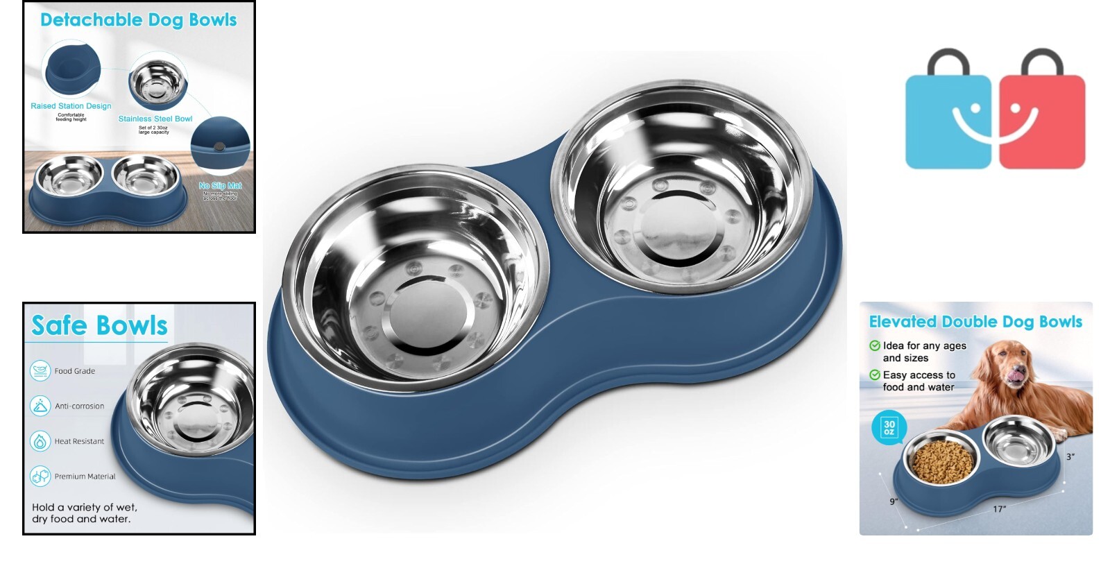 Dual 30oz Stainless Steel Pet Bowls with Raised Design for Comfortable Feeding