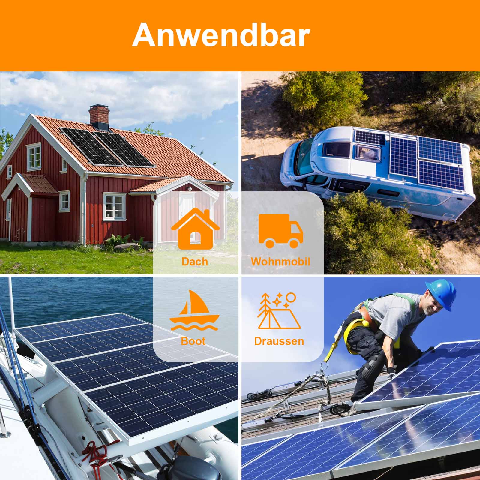 - Das Produkt ist mit einer Halterung ausgestattet, Es kann auf dem Flachdach von Wohnmobil, Boot oder Auto. Mit einem intelligenten MPPT