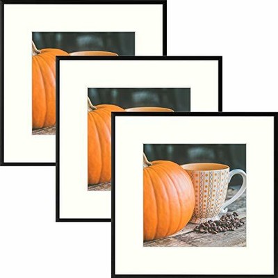 , Aluminum Photo Frame with Ivory Color Mat for Pictures - Sawtooth Hangers, Spring Clips - Wall Mounting - Real Glass - Metal Frame (Black, 12x12 Frame, 3-Pack)