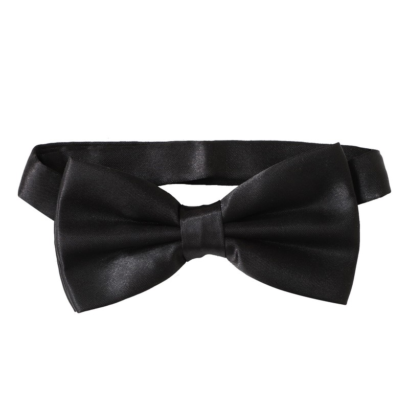 Bow tie with small clip and elastic band for comfort and size adjustment.