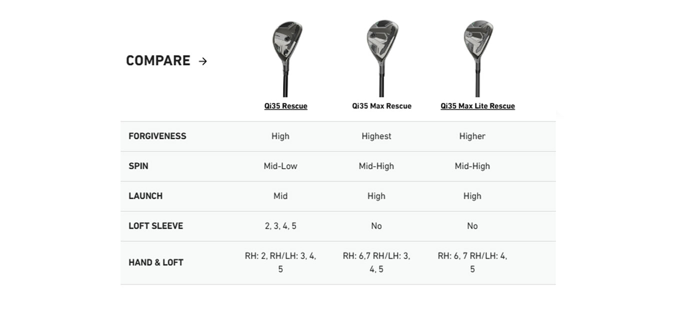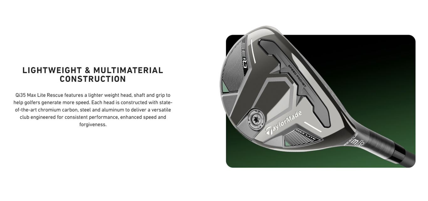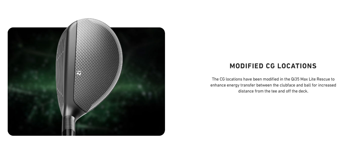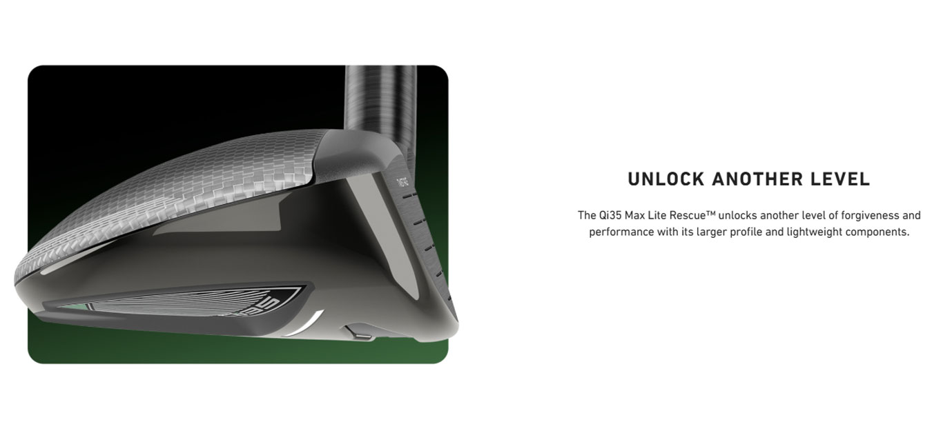The Qi35 Max Lite Rescue™ unlocks another level of forgiveness and performance with its larger profile and lightweight components. Qi35 Max Lite Rescue features a lighter weight head, shaft and grip to help golfers generate more speed. Each head is constructed with state-of-the-art chromium carbon, steel and aluminum to deliver a versatile club engineered for consistent performance, enhanced speed and forgiveness. The CG locations have been modified in the Qi35 Max Lite Rescue to enhance energy transfer between the clubface and ball for increased distance from the tee and off the deck.