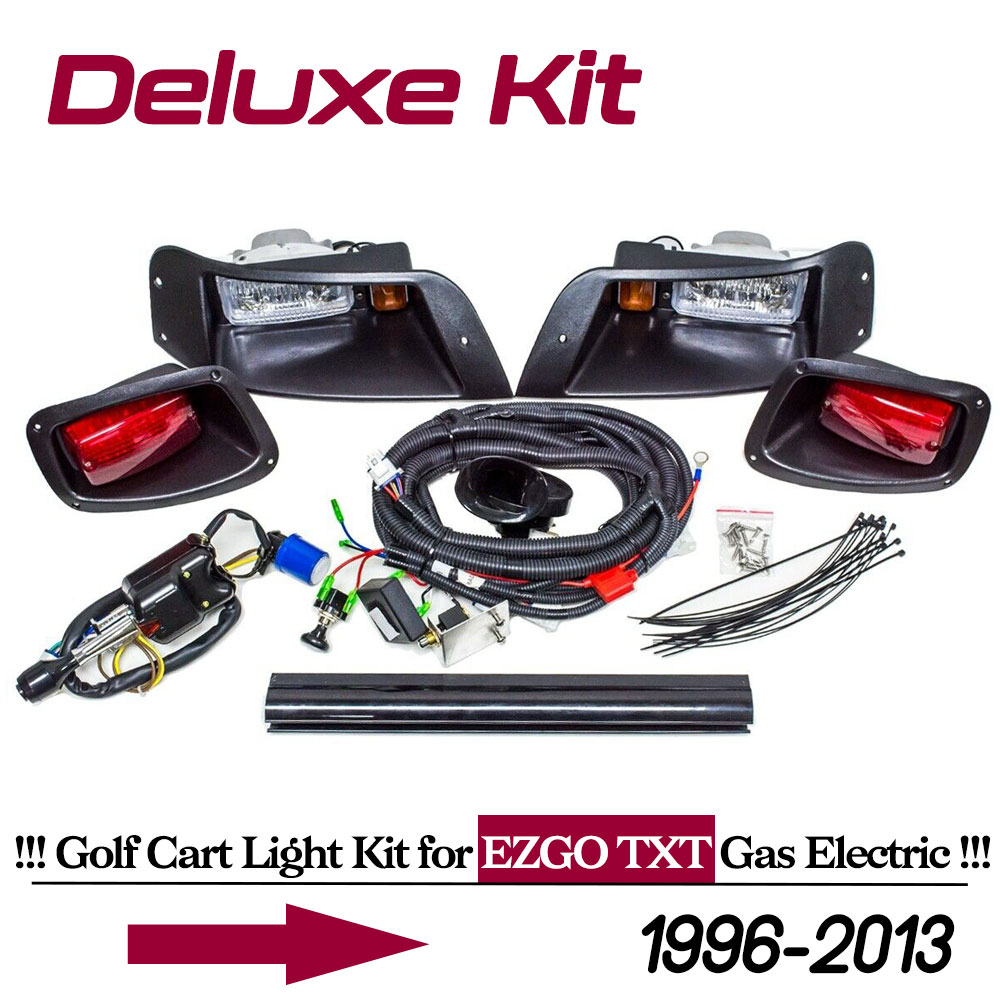 - Our state-of-the-art LED light kit is tailor-made for and compatible with EZGO TXT 1996-2013 Gas/Electric Vehicles, featuring an automatic turn signal shutdown after 28 seconds to prevent any potential driving hazards.