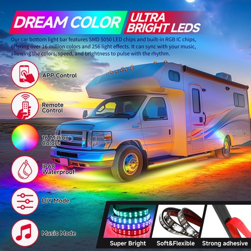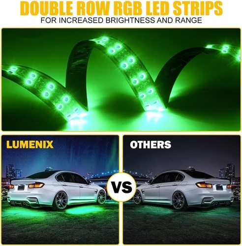 - High Brightness Double Row Underglow : Car underglow features high-Intensity SMD 5050 LED chips. Brighter output, uniform lighting. Enhances the looks and feel of your vehicle with brilliant lighting effects.