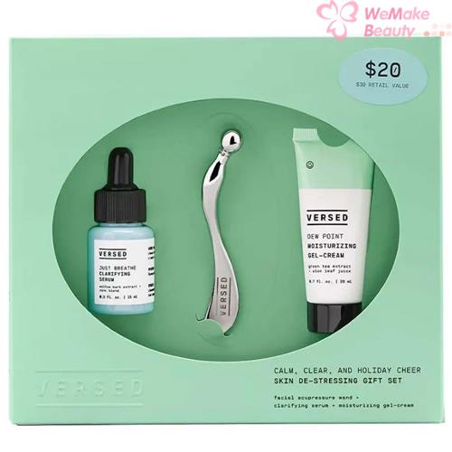 |  | | Brand: | Versed | | Name: | Calm Clear and Holiday Cheer Skin De-Stressing Gift Set | | Gender: | Women | | Type: | Giftset | | Packaging: | Versed Calm Clear and Holiday Cheer Skin De Stressing 3pc Gift Set Includes: Just Breathe Clarifying Serum 0.5oz / 15ml + Facial Acupressure Wand + Dew Point Moisturizing Gel Cream 0.7oz / 20ml | | Size: | 3 Piece Set | | *Some products such as mini collectibles and testers may be stated as "Sample Not For Resale" and may not be ideal as a gift |