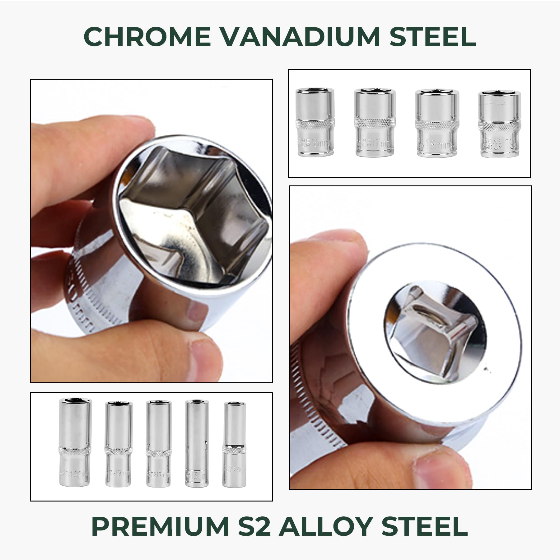 17pcs X Standard Socket: 10, 11, 12, 13, 14, 15, 16, 17, 18, 19, 20, 21, 22, 24, 27,