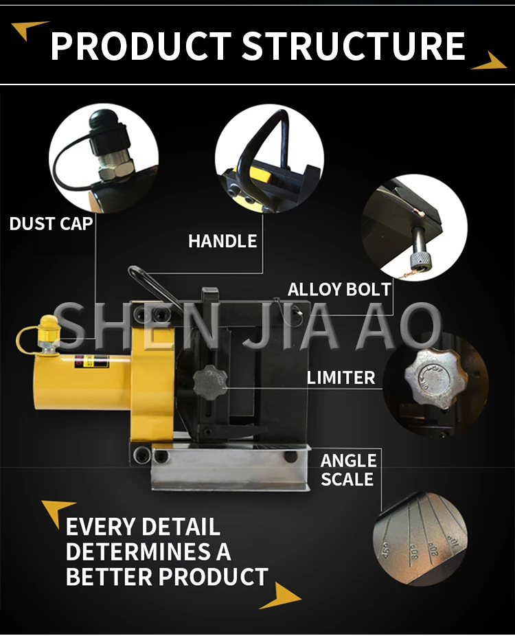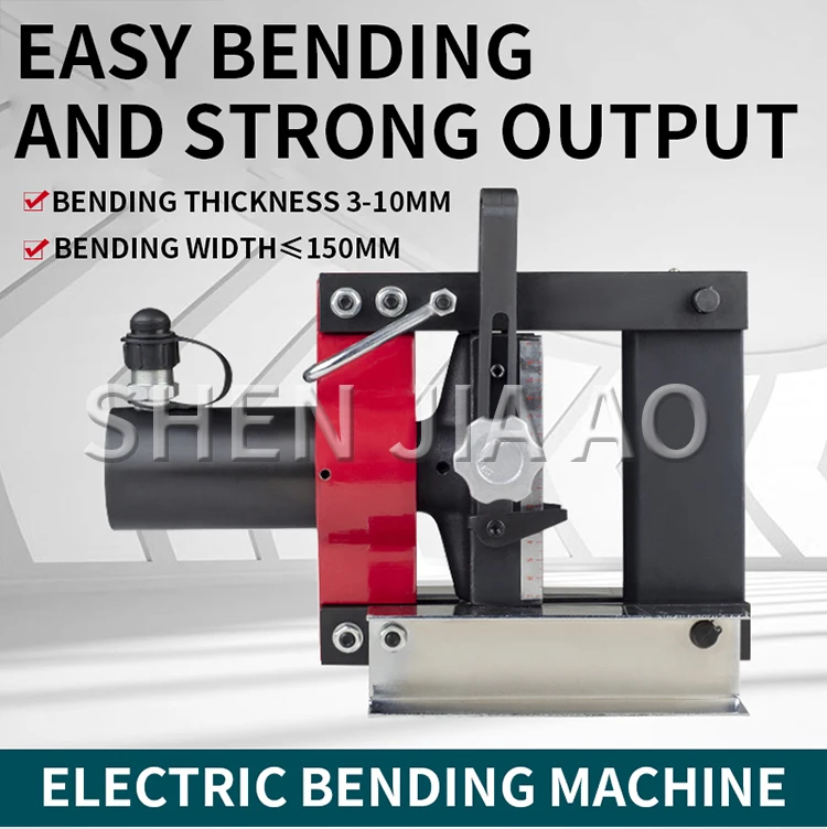 Name: Electric Bending Machine Model: CB-150D Weight: 21kg Pressure: 16T Bending width: <150mm Bending thickness: 3-10mm Bending capacity: <150*10mm Minimum bending angle: 90°