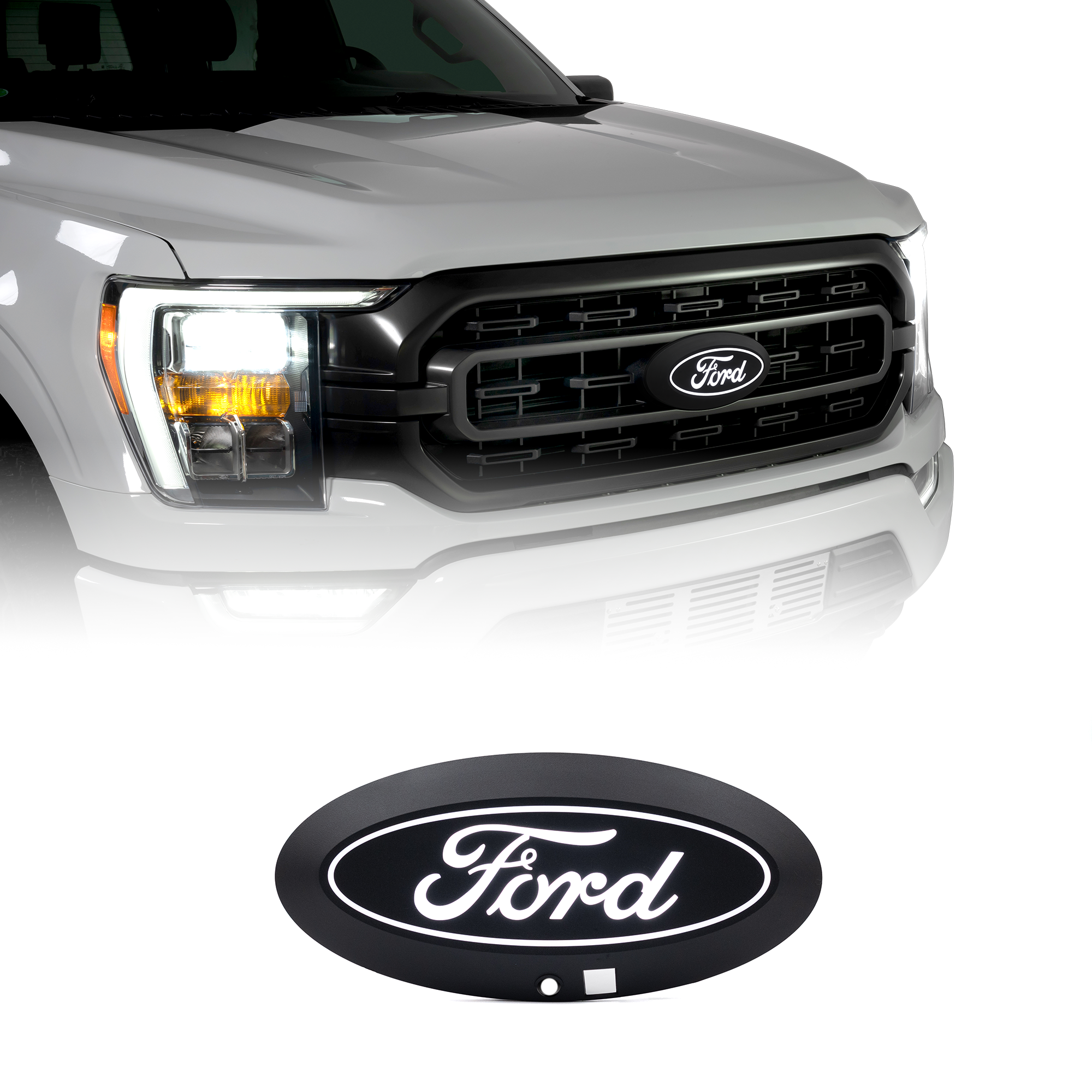 Enhance the visual appeal of your Ford truck by replacing its standard blue factory front grille emblem with the newly introduced illuminated Ford LED oval emblem. Officially Licensed: Available for F150, Super Duty, Ranger, Maverick, Explorer, and Expedition! Easy Installation: Putco's LED Emblem fits directly into OEM post mounts and is designed for a perfect fit, ensuring a headache-free installation. Wiring: Easy Plug & Play with installation into the fuse box. Stand Out Brightness: The lighted oval is rated 6,500K White LED output. State-of-the-art Manufacturing: Chip-on-board LEDs layout for a bright and crisp illumination day or night.
