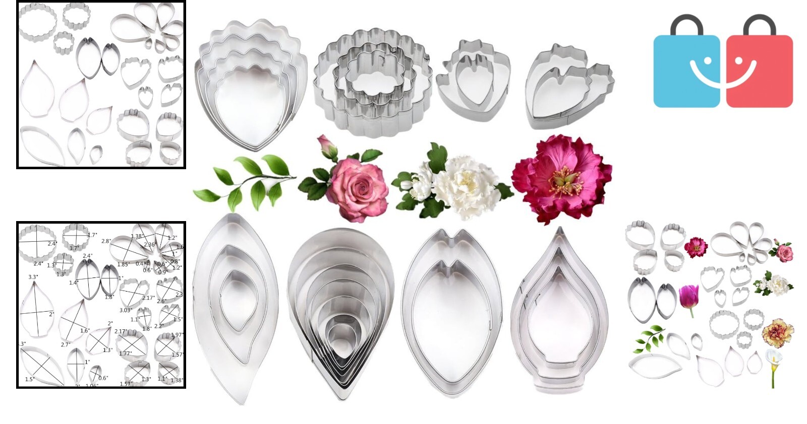 Elevate your cake decorating to new heights and create stunning edible masterpieces. Order your 26-Pc Stainless Steel Flower & Leaf Cutter Set now!
