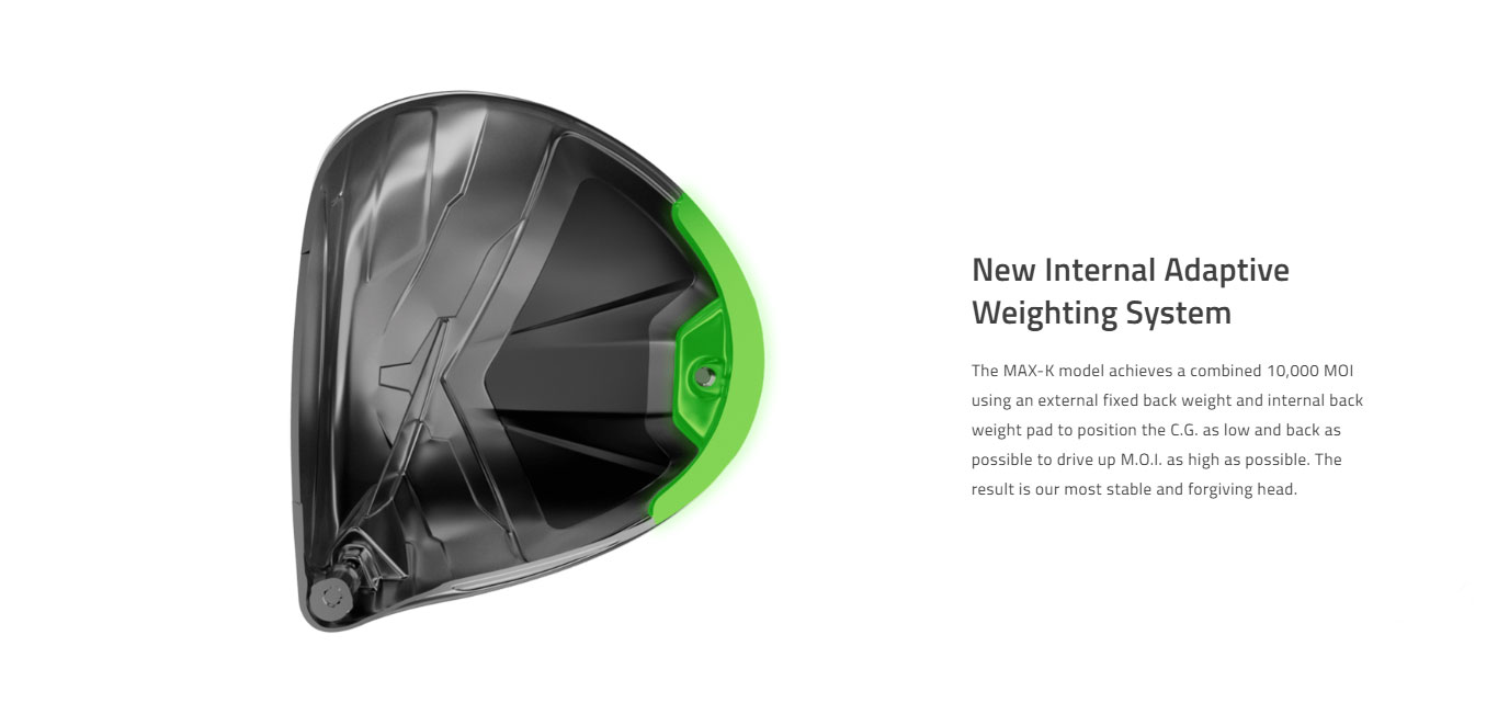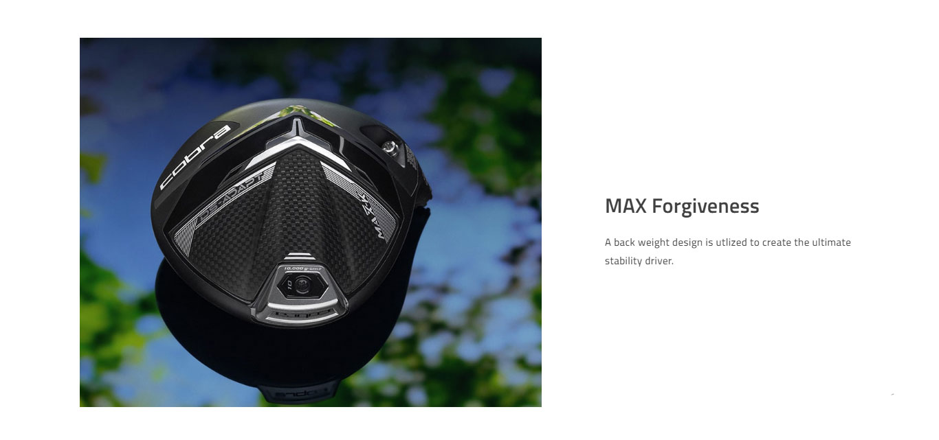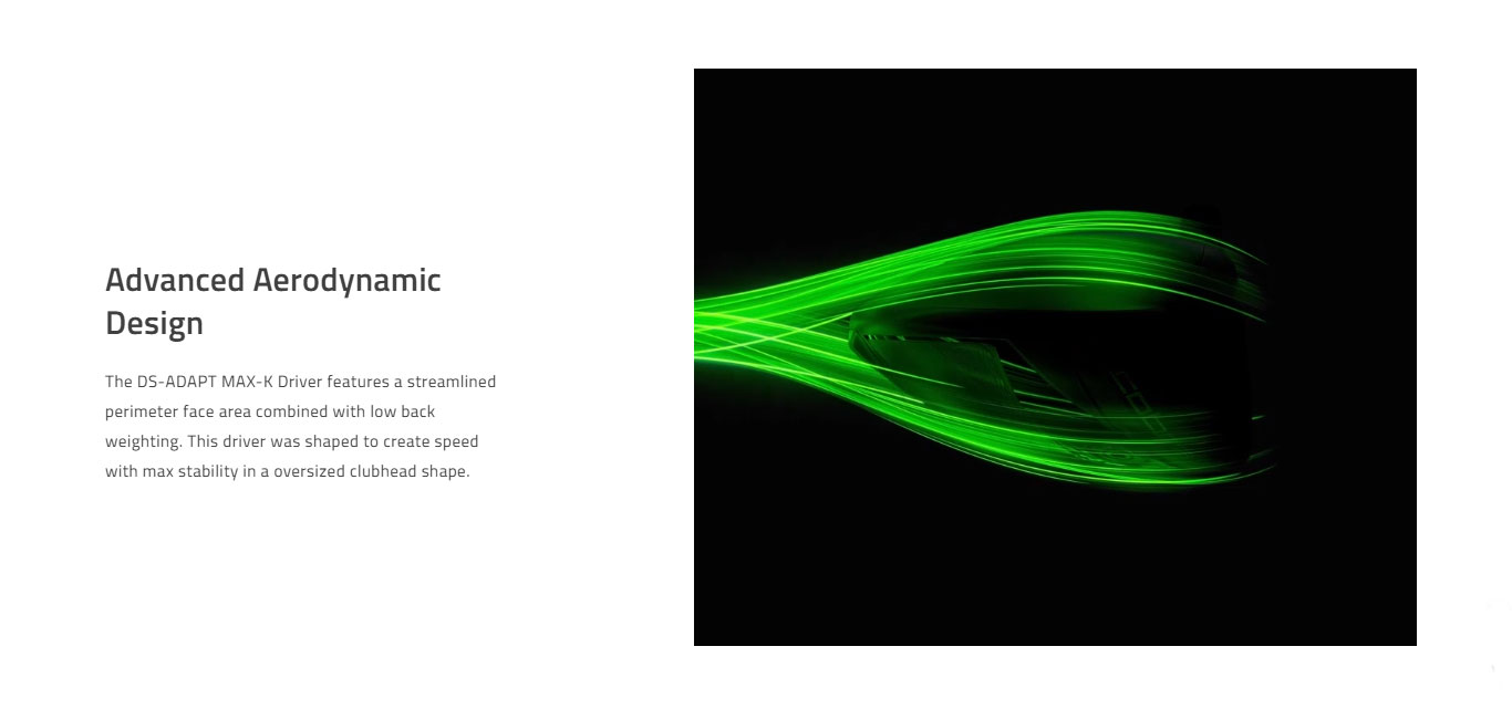 Unlock your best golf with COBRA's fastest and most fittable family of drivers. Adaptive weighting places CG back in the MAX-K model, delivering a combined 10,000 MOI for maximum forgiveness. FutureFit33™ offers 33 unique loft & lie settings to allow you to find your ideal ball flight, minimize your miss, maximize your distance, and Dial-In Your Game with DS-ADAPT. FutureFit33™ features 33 unique loft & lie settings to optimize your ball flight, minimize your miss, and maximize your distance. Loft & lie can be adjusted by +/- 2 degrees in any direction, allowing for the ultimate fine-tuned fitting customization, while the innovative SMARTPAD® design enables the face angle to remain square regardless of the setting. The DS-ADAPT MAX-K Driver features a streamlined perimeter face area combined with low back weighting. This driver was shaped to create speed with max stability in a oversized clubhead shape. The MAX-K model achieves a combined 10,000 MOI using an external fixed back weight and internal back weight pad to position the C.G. as low and back as possible to drive up M.O.I. as high as possible. The result is our most stable and forgiving head. A larger, forged face insert with H.O.T. Face technology delivers improved face flex for more robust distance and ball speeds on and around the center of the face. A back weight design is utlized to create the ultimate stability driver.