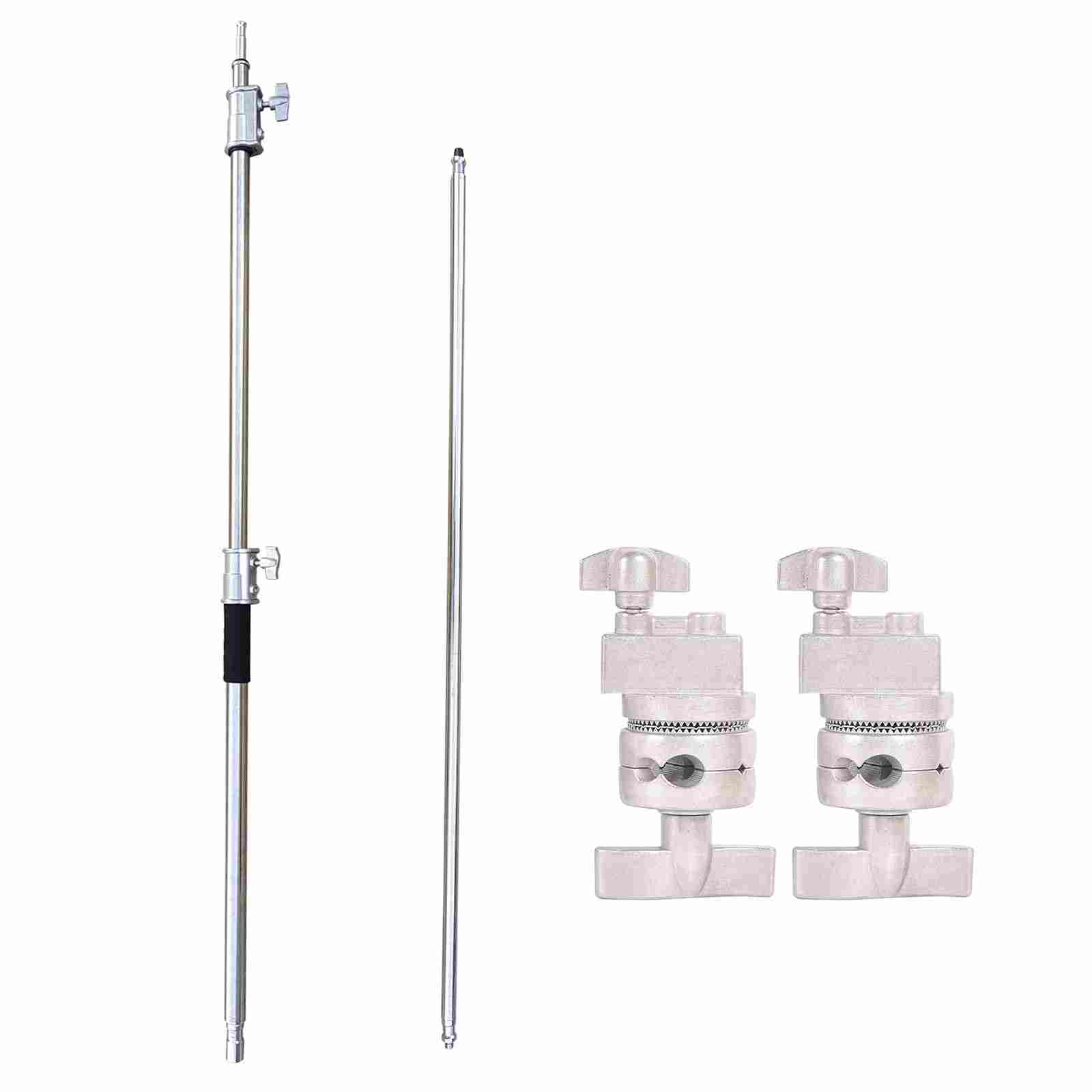 【Extension Arm】- Holding arm length is 50inch. Equipped with 1/4"and 3/8" screws at both ends, the extension arm can mount most photographic accessories with ease. Grip heads enable you to keep the arm firmly in place and set different angles effortlessly